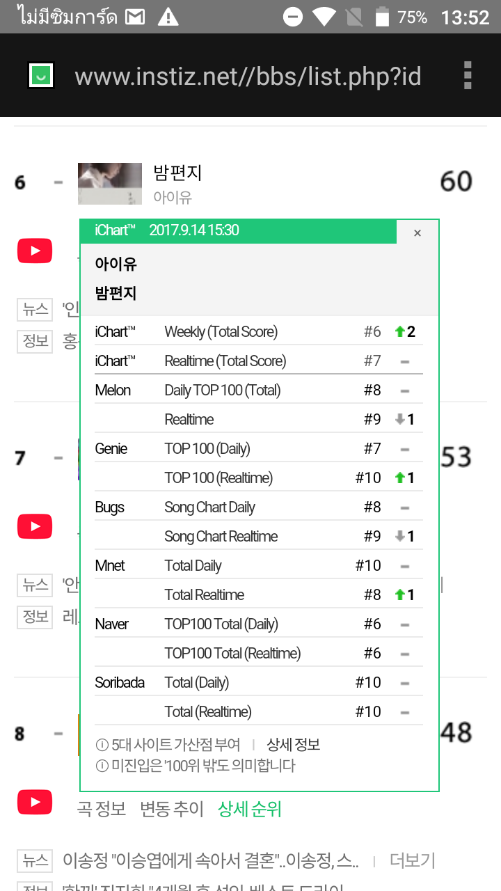 genie bugs naver ก็เข้าท็อป 10 เหมือนกัน IU อึดมาก เพลง5เดือนแล้ว เกินหน้าเกินตา palette เพลงโปรโมทไปอีก ลี่น้อลี่
