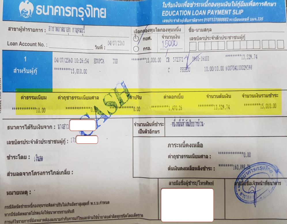 แต่ธนาคารกรุงไทยที่ลูกหนี้ไปจ่าย ออกใบเสร็จว่า