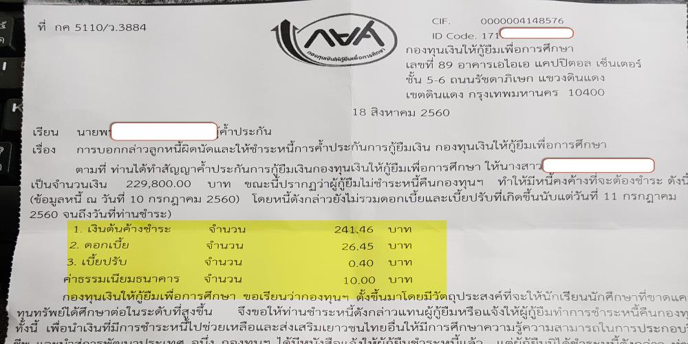 สอบถามกรณี มีจดหมาย แจ้งว่าลูกหนี้ กยศ ผิดนัด ทั้งที่จ่ายแล้ว