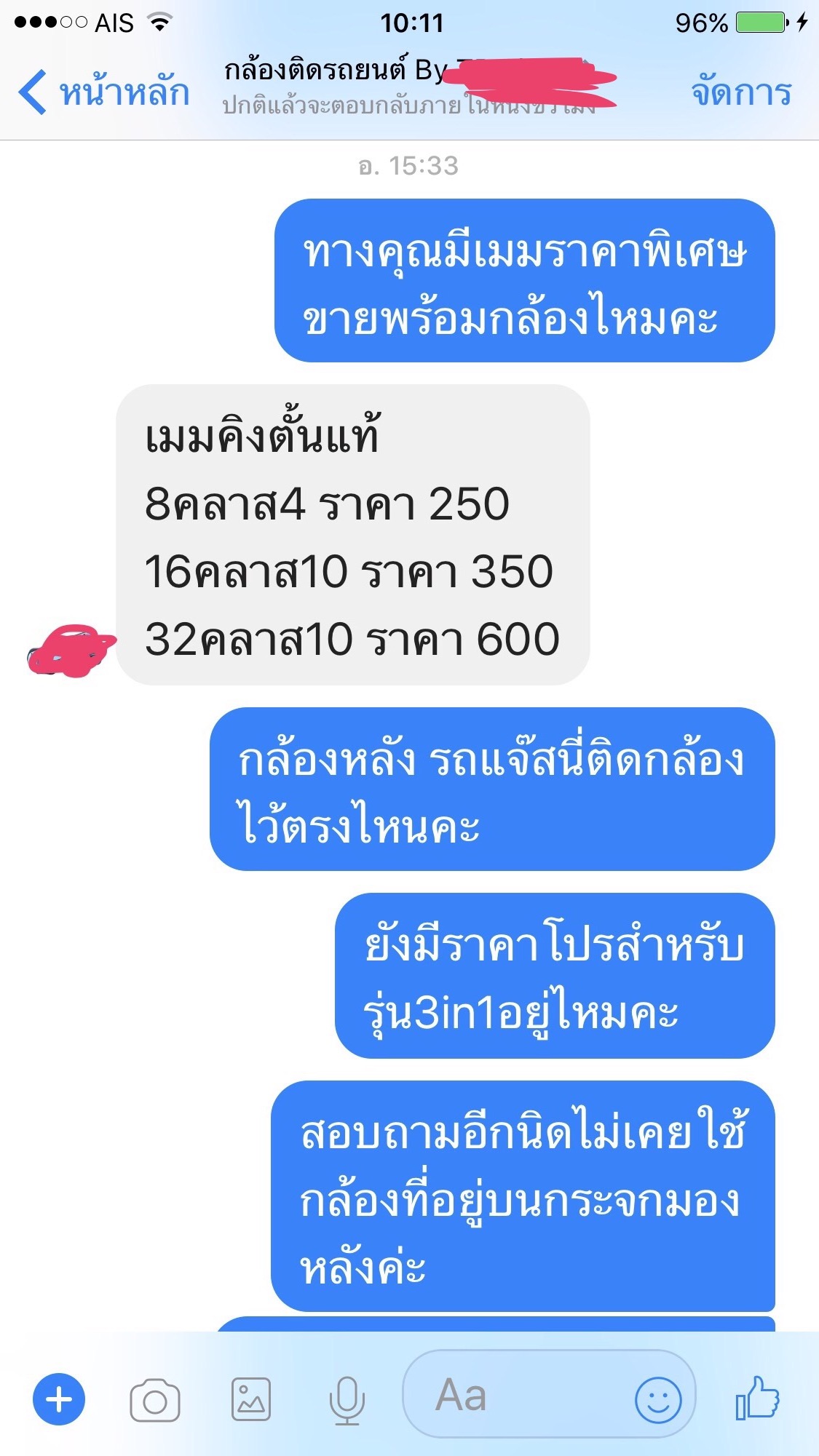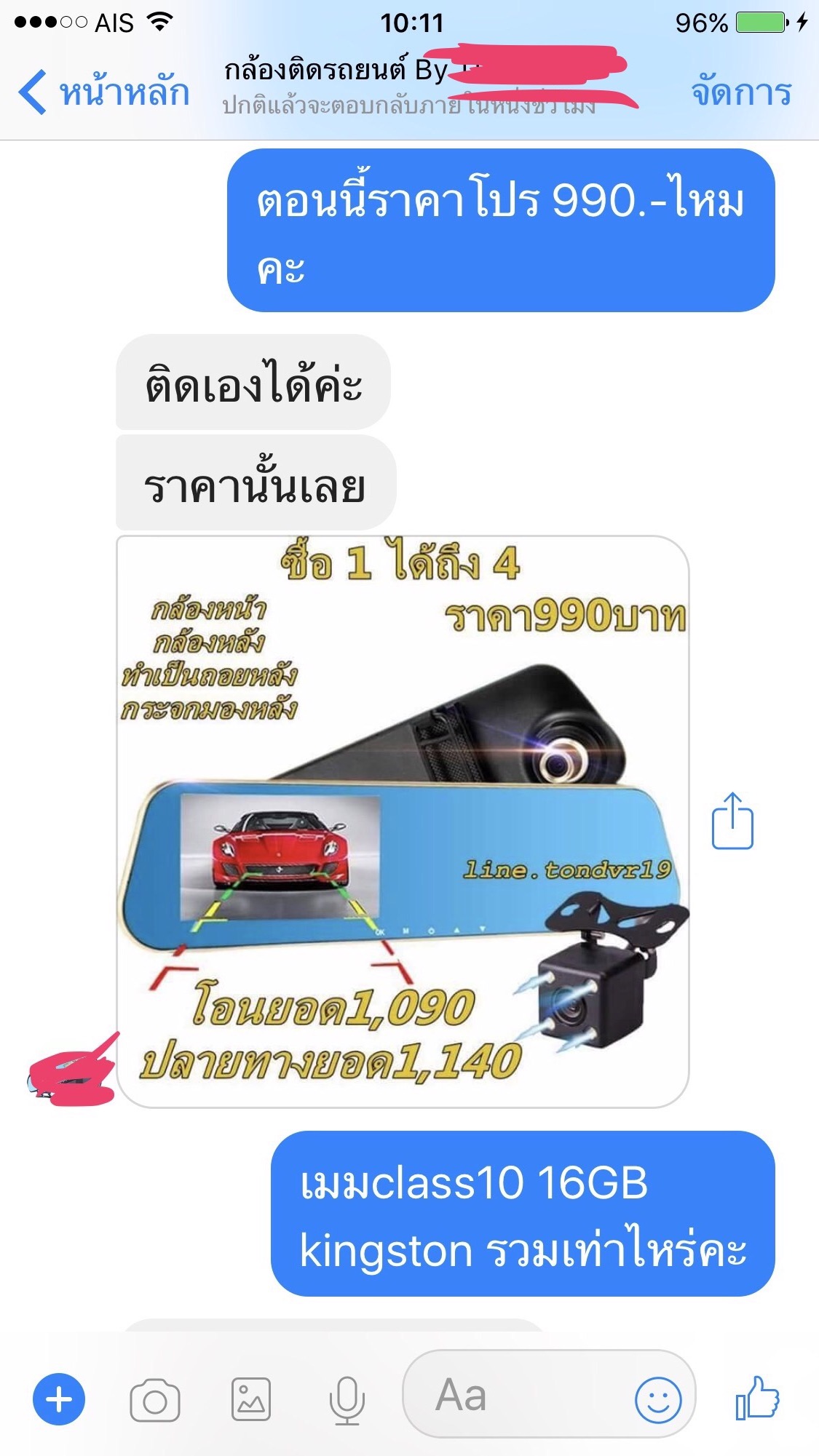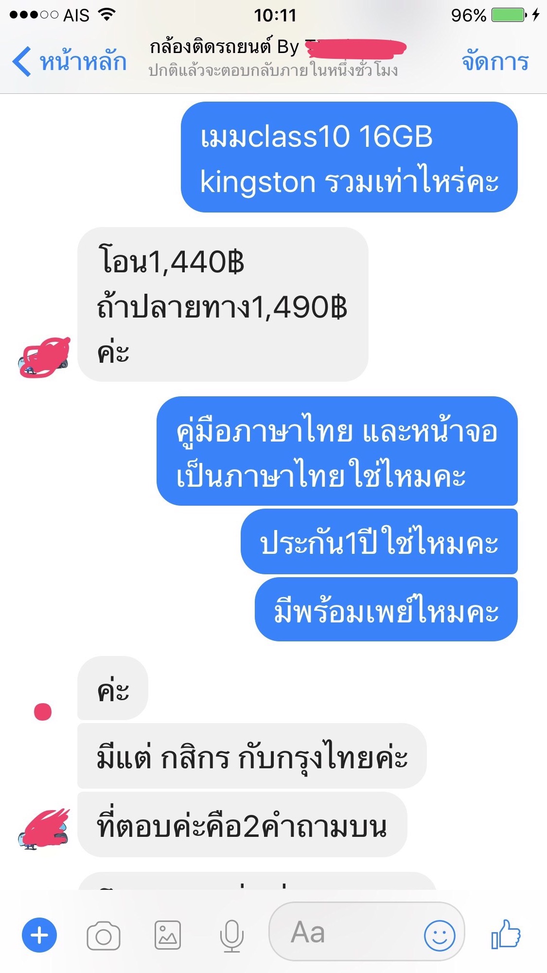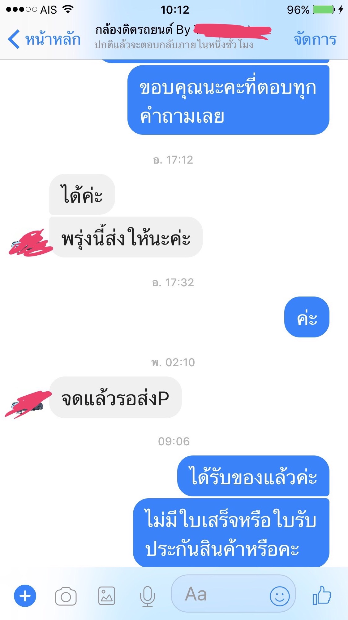 สวัสดีค่ะ นี่คือข้อความแชทของเพื่อนเรากับร้านค้าขายกล้องติดรถยนต์แห่งหนึ่ง เมื่อ12/9/60 เพื่อนได้หากล้องติดรถยนต์ตามในเพจในfb เพื่อทดแทนตัวเก่าทีเสีย สอบถามอยู่2ร้าน แต่ตกลงซื้อร้านนี้เพราะมีรับประกัน1ปี