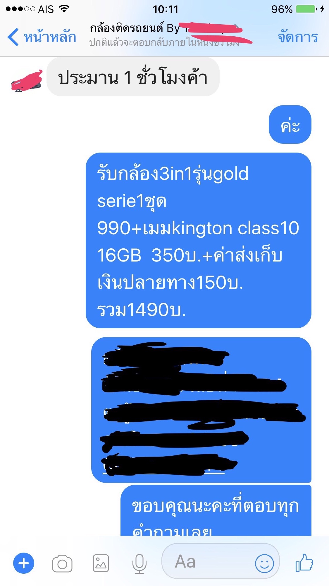ให้ภาพเล่าเรื่องนะคะ นี่เป็นแชตสั่งซื้อ ตั้งแต่วันที่ 7 ก.ค. ทวงถามไป 2-3 รอบ ปัจจุบัน เงียบและเราโดนบล็อค ส่งข้อความหรือเม้นท์ไม่ได้ และเราพบว่า มีอีก 2-3 เพจที่น่าจะเป็นเครือข่ายเดียวกัน จ