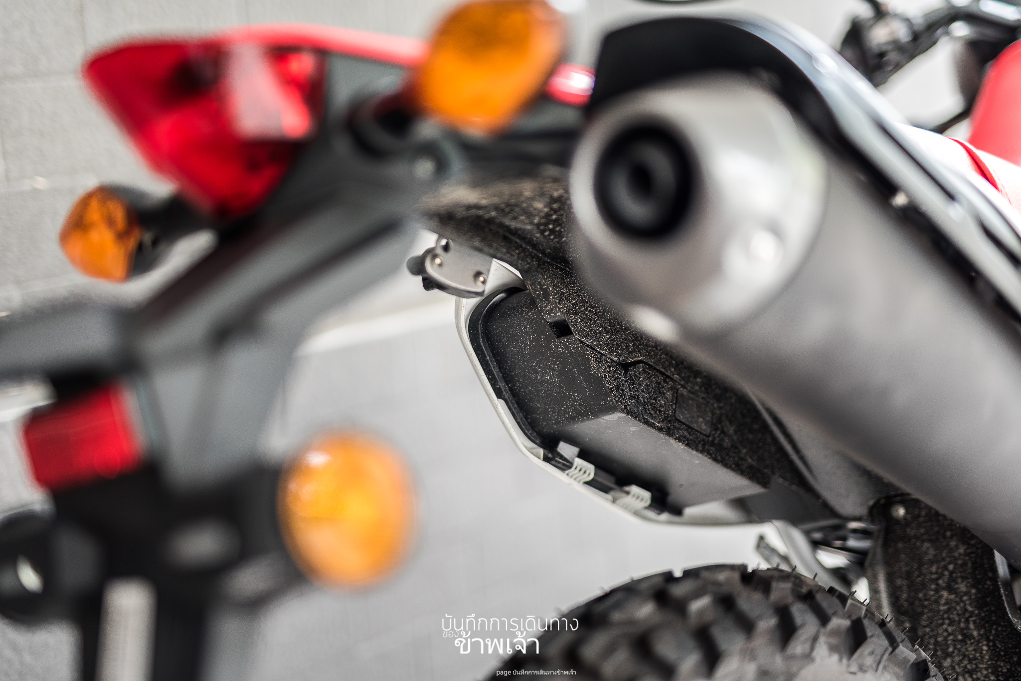 ส่วนไฟหลัง ด้านหลังผมกลับไม่ค่อยชอบ จริง ๆ แล้วผมรู้สึกว่า รถรุ่นใหม่ ๆ ทุกวันนี้ออกแบบท้ายรถ โดยที่มีไฟท้ายเป็นพระเอกได้สวยงามมากเกือบทุกตัว แต่เจ้า CRF 250L ผมกลับรู้สึกว่า มันออกแบบตรงนี้ไม่สวยนัก