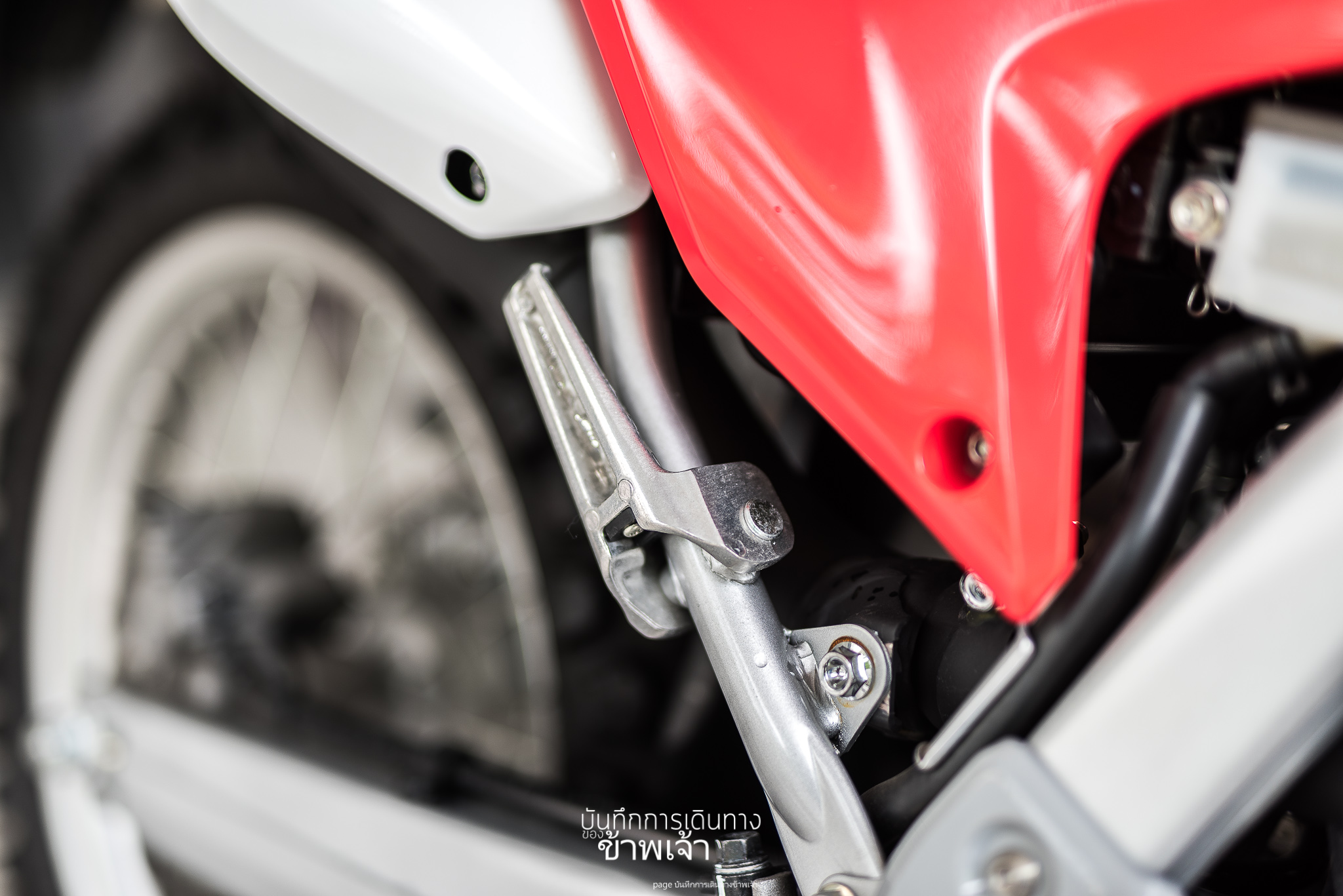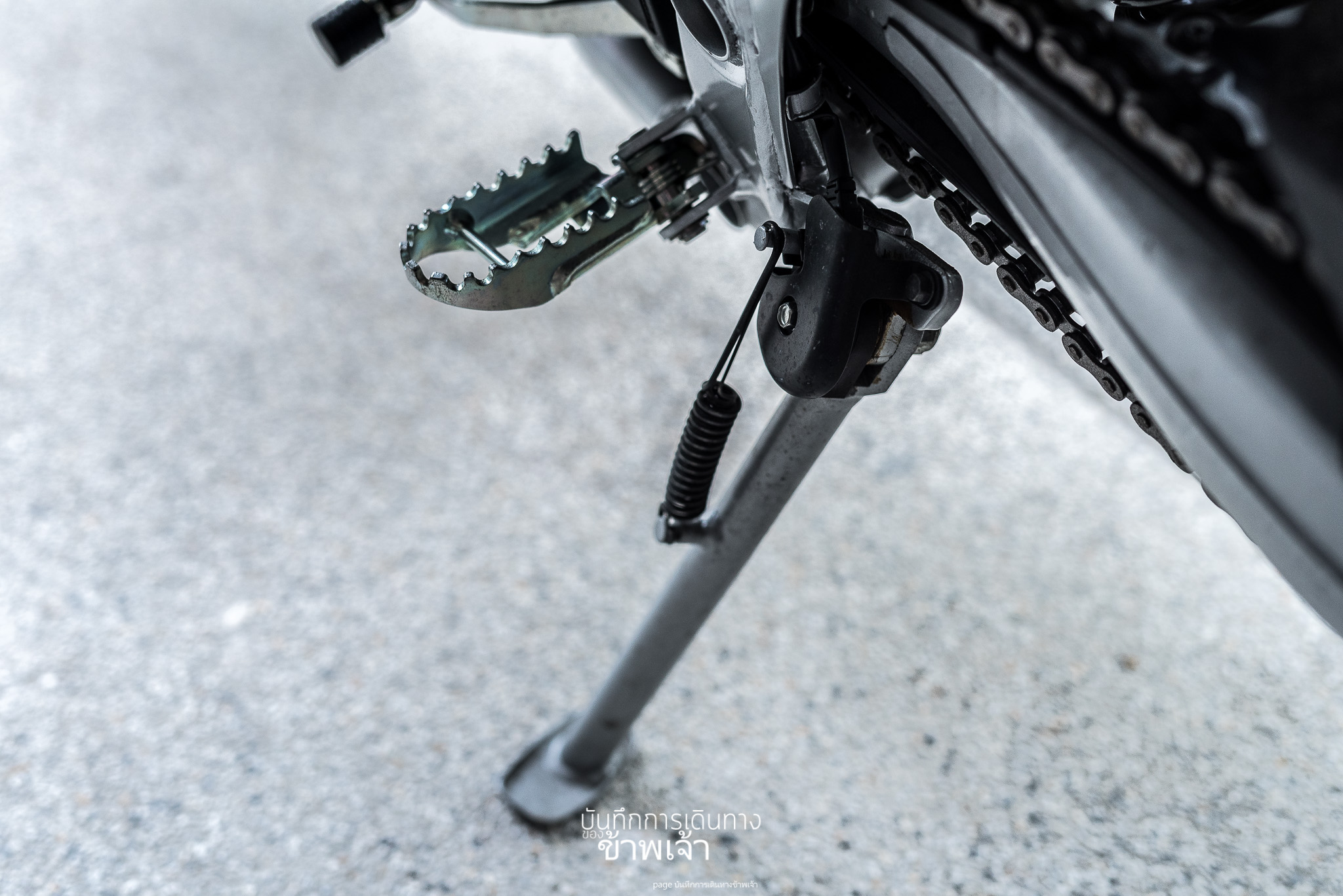 ที่พักเท้าคนซ้อน ไม่ต้องมีก็ได้มั้งถ้ามันจะติดตั้งไว้ตรงนั้น บอกตรง ๆ ว่า คนซ้อนแทบจะต้องนั่งยอง ๆ เลยหรือเปล่า คือยังไม่เคยมีใครซ้อนหรอก แต่ดูตำแหน่งแล้ว นั่งยอง ๆ แน่ ๆ ใครมันจะไปนั่งได้ -*- ใจอยากเอาออก เพื่อลดน้ำหนักตัวรถไปในตัว