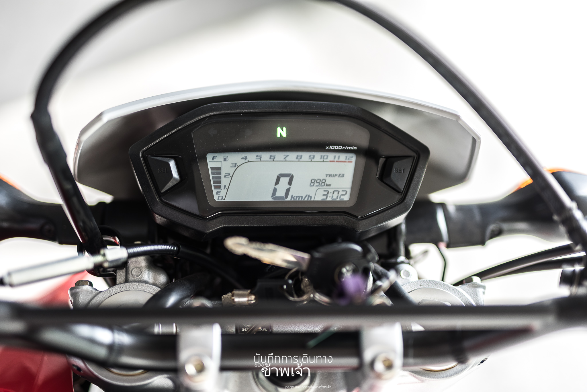 เรือนไมล์ของรถโฉม 2017 จะเห็นได้ว่ามีวัดรอบมาให้แล้วที่พักเท้าคนซ้อน ไม่ต้องมีก็ได้มั้งถ้ามันจะติดตั้งไว้ตรงนั้น บอกตรง ๆ ว่า คนซ้อนแทบจะต้องนั่งยอง ๆ เลยหรือเปล่า คือยังไม่เคยมีใครซ้อนหรอก แต่ดูตำแหน่งแล้ว นั่งยอง ๆ แน่ ๆ ใครมันจะไปนั่งได้ -*- ใจอยากเอาออก เพื่อลดน้ำหนักตัวรถไปในตัว