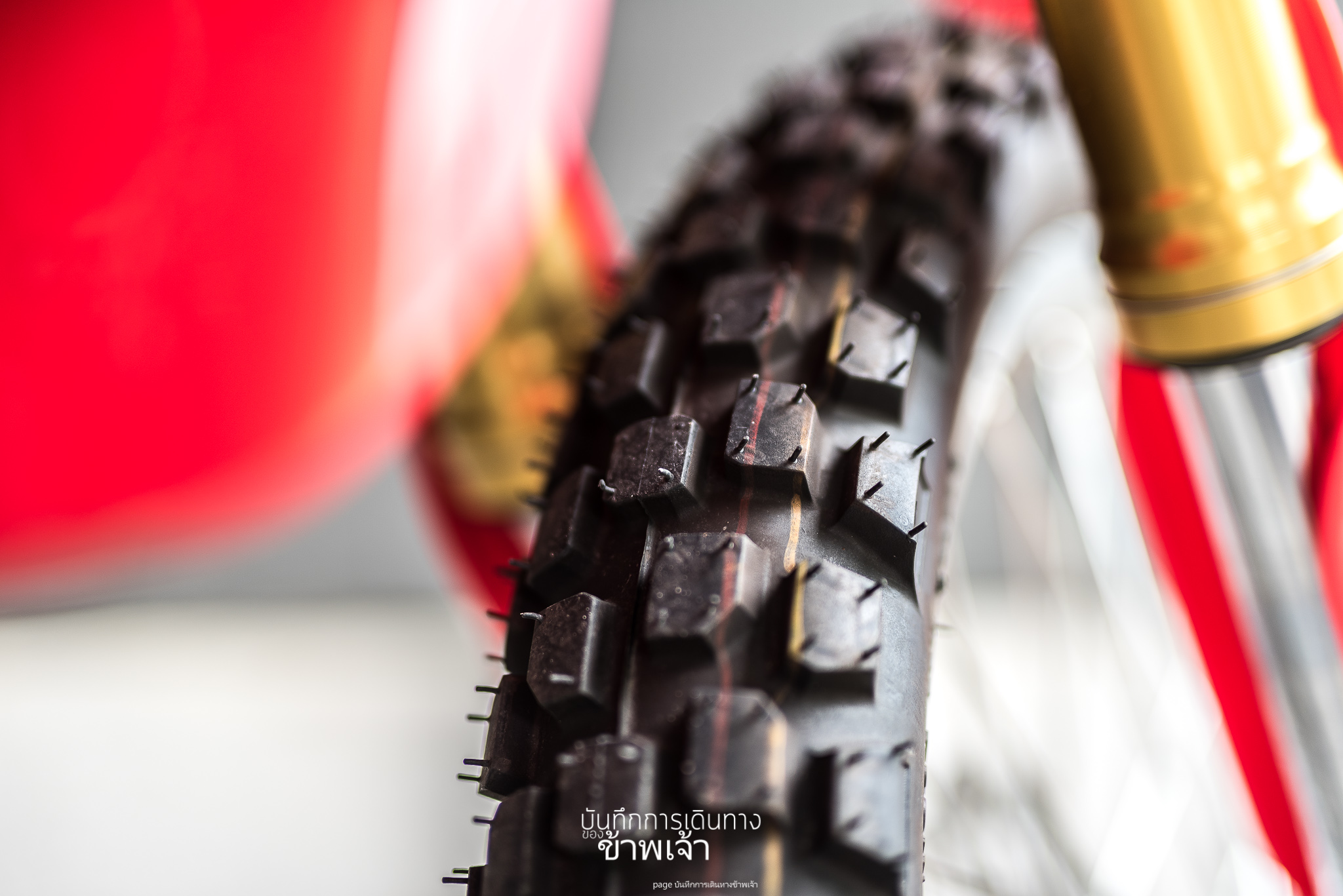 ยางหนาม ล้อวิบาก ล้อใหญ่มาก ดอกยางก็เป็นตุมใหญ่ ๆ แบบนี้ อยากเอาไปลองวิ่งทางที่มันเป็นโคลนเละ ๆ ดู ว่ามันจะดีกว่ายางทางเรียบระดับไหน