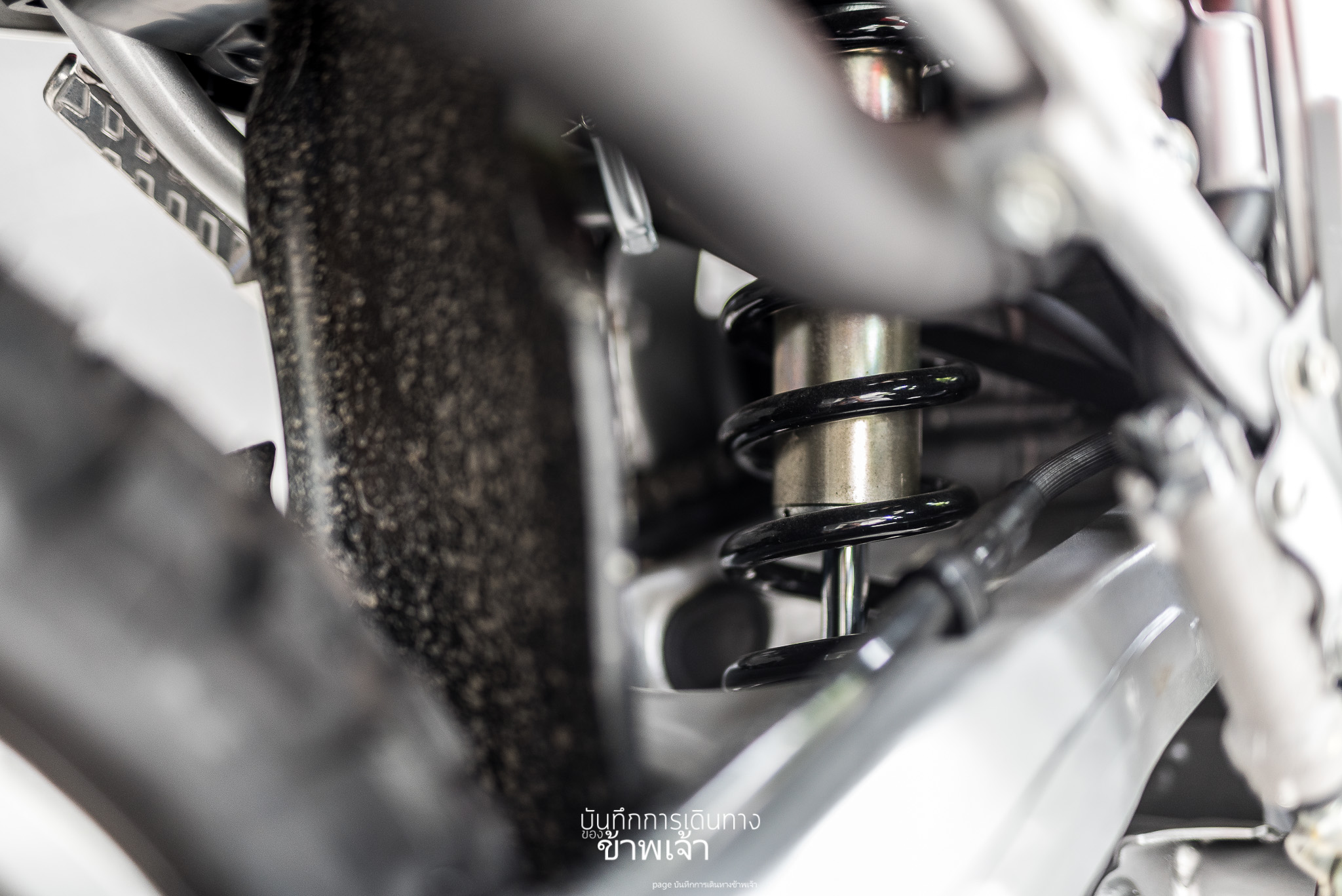 ถ่ายเจาะมาช่วงท้ายรถค่อนไปทางล้อหลัง ให้เห็นสวิงอาร์มชัด ๆ