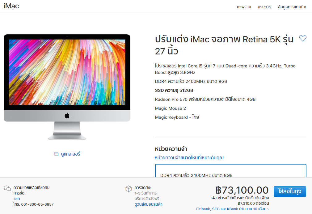 iMac 5K -> ramซื้อใส่ที่หลัง ssd512 -> 73,1000
