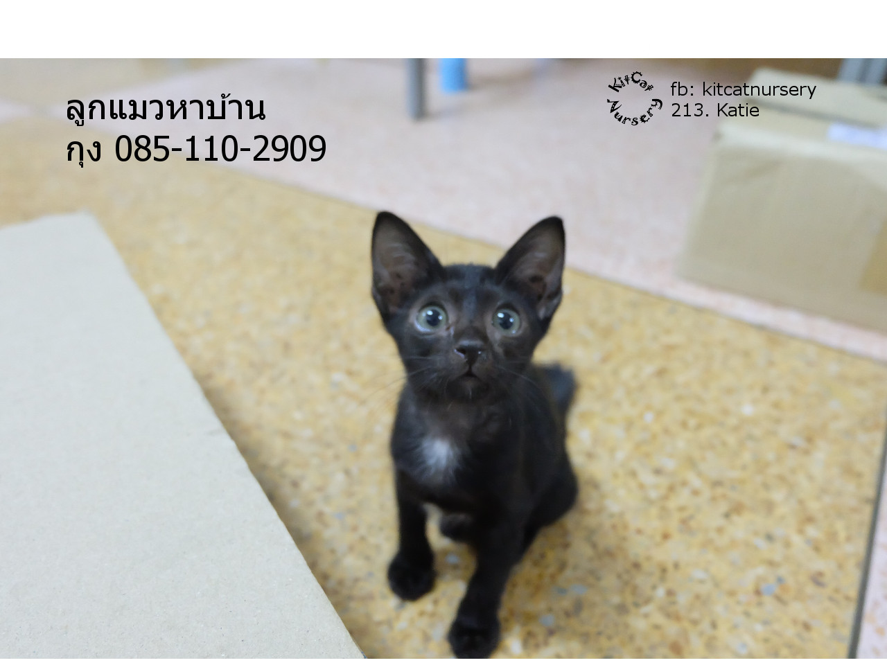 Katie น่ารัก ฉลาด และพลังงานเยอะมาก วิ่งได้ทั้งวันไม่กลัวอะไรเลย อายุ 2 เดือน กินอาหารเปียก อาหารเม็ดพอได้ใช้กะบะทรายเป็น ขอโอกาสให้ Katie ได้มีบ้านที่อบอุ่นด้วยนะคะ