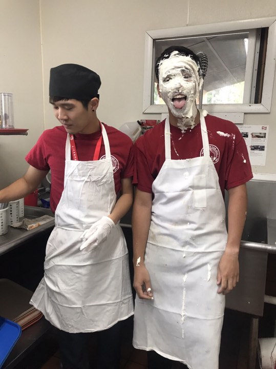 เรื่องงานนะคับ ผมได้ตำแหน่ง prep cook เรทอยู่ที่9.0ดอลคับ การทำงานในตำแหน่งนี้ของผมก็มีแค่หั่นผักกับผลไม้คับ หั่นกันไปเลย 2 เดือนครึ่ง 555+(กลับมาไทยนี่หั่นผัก ผลไม้เป็นทุกอย่างทั้งๆที่ไม่เคยทำเลยตอนอยู่ไทย) เพราะเหมือน chef เค้าให้ผมเป็นคนดูแล SALAD BAR เนื่องจากไปถึงเร็วแล้วยังไม่มีใครประจำอยู่ที่ SALAD BAR พวกคนที่มาทีหลังชาติอื่นๆก็จะได้ไปทำอย่างอื่น เช่น ฉีกหมู ทำซอส หั่นผักสำหรับทำอย่างอื่น งานถือเป็นงานที่ไม่ยากเลยยิ่งใครหั่นเป็นอยู่แล้วยิ่งสบายเลยคับ เพื่อนร่วมงาน เป็นเด็กเสริฟเป็นชาวอเมริกันเกือบหมดเลย นิสัยดีทุกคนไม่มีการหยิ่งหรือเหยียด ส่วนพวกคนในครัวก็มีอเมริกัน ไทย โปแลนด์ ไต้หวัน ตุรกี ประมาณนี้นะ