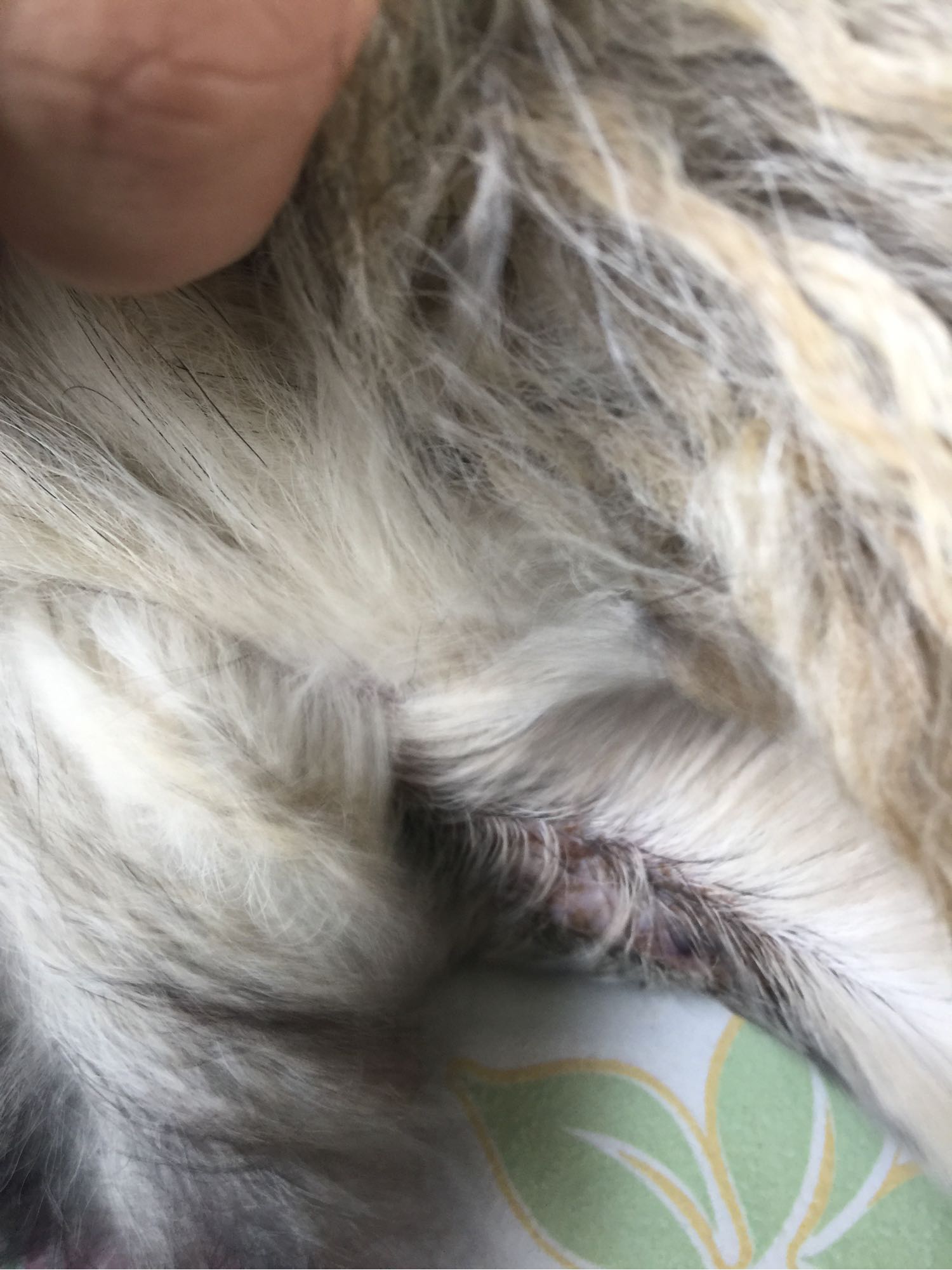 พึ่งรับน้องมาได้อาทิตย์เศษพอลูบตัวน้องรู้สึกสะดุดๆเลยแหวกขนดูเจอแบบนี้น้องอายุ2เดือนครับ ขนไม่ร่วงจับแล้ว ไม่เจ็บครับ