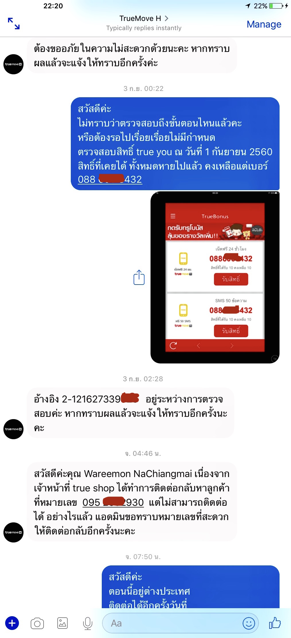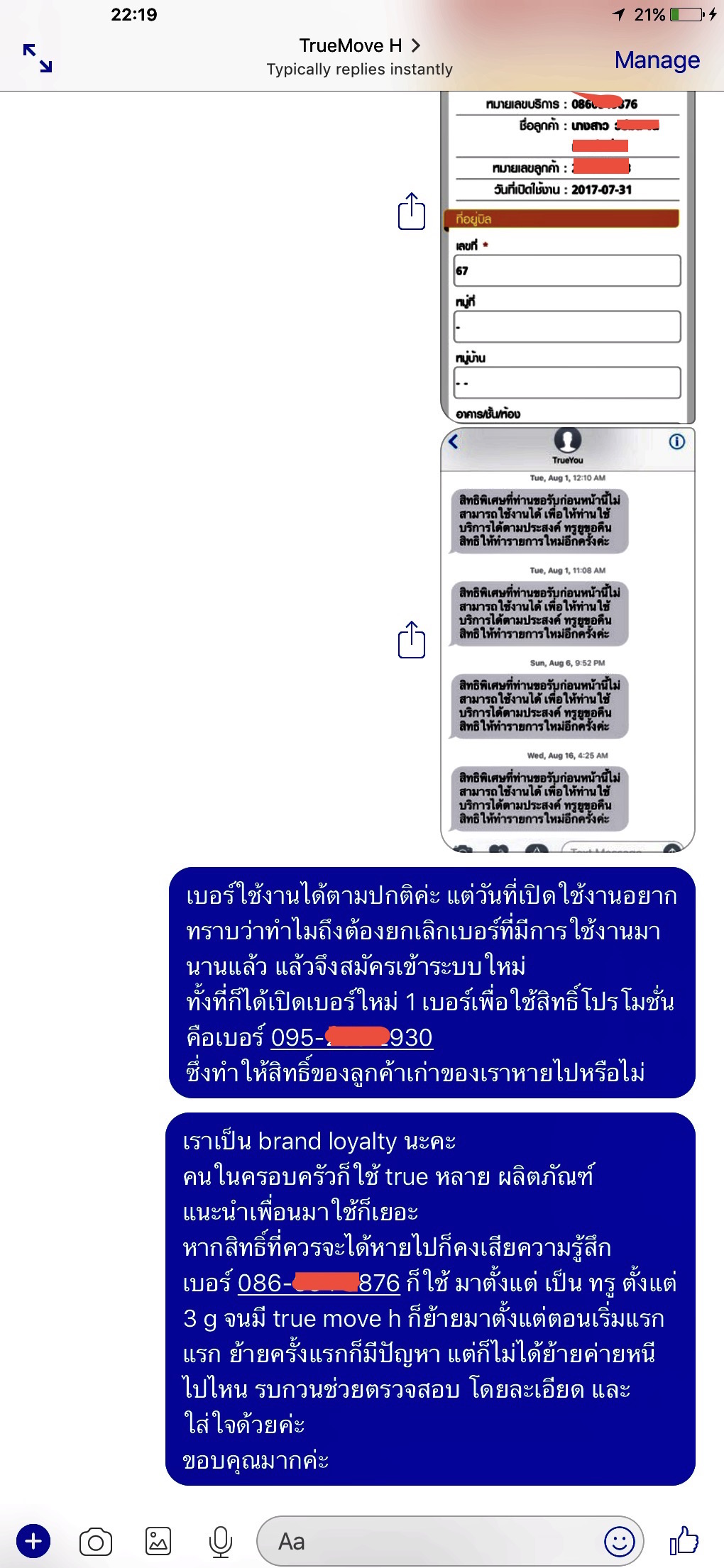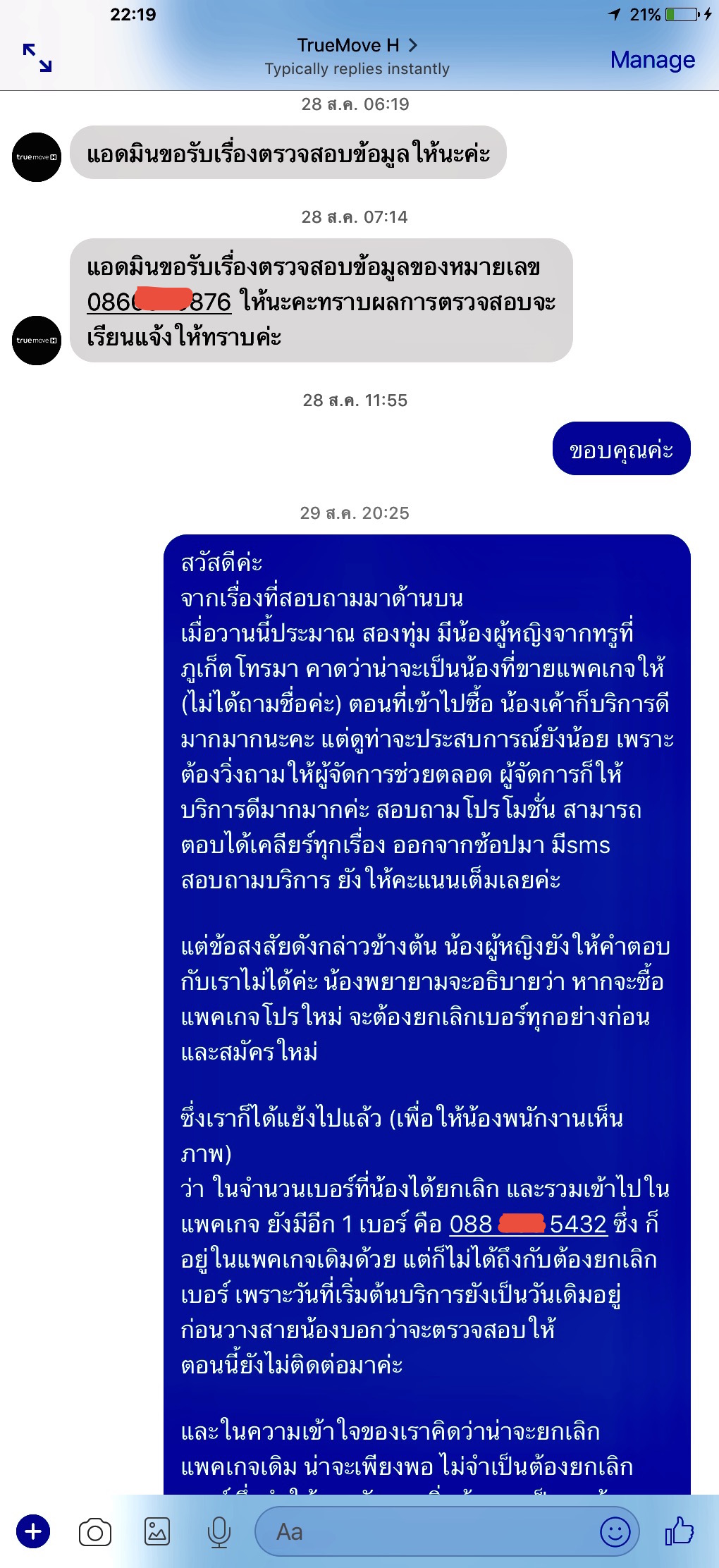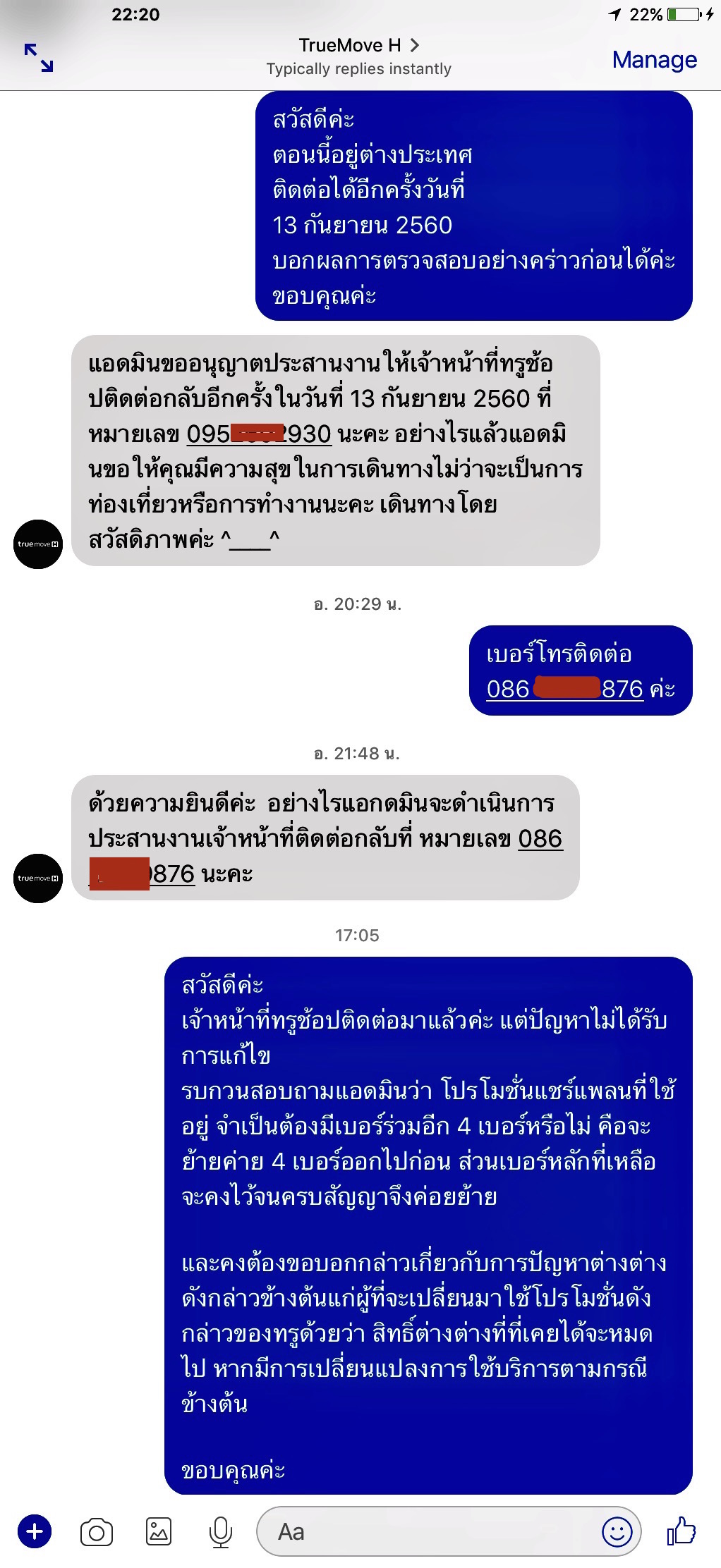 มีข้อความที่ได้ติดต่อกับเจ้าหน้าที่ Truemove ค่ะ