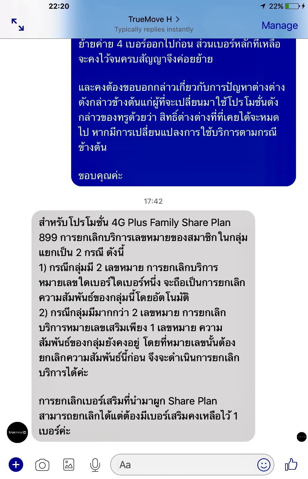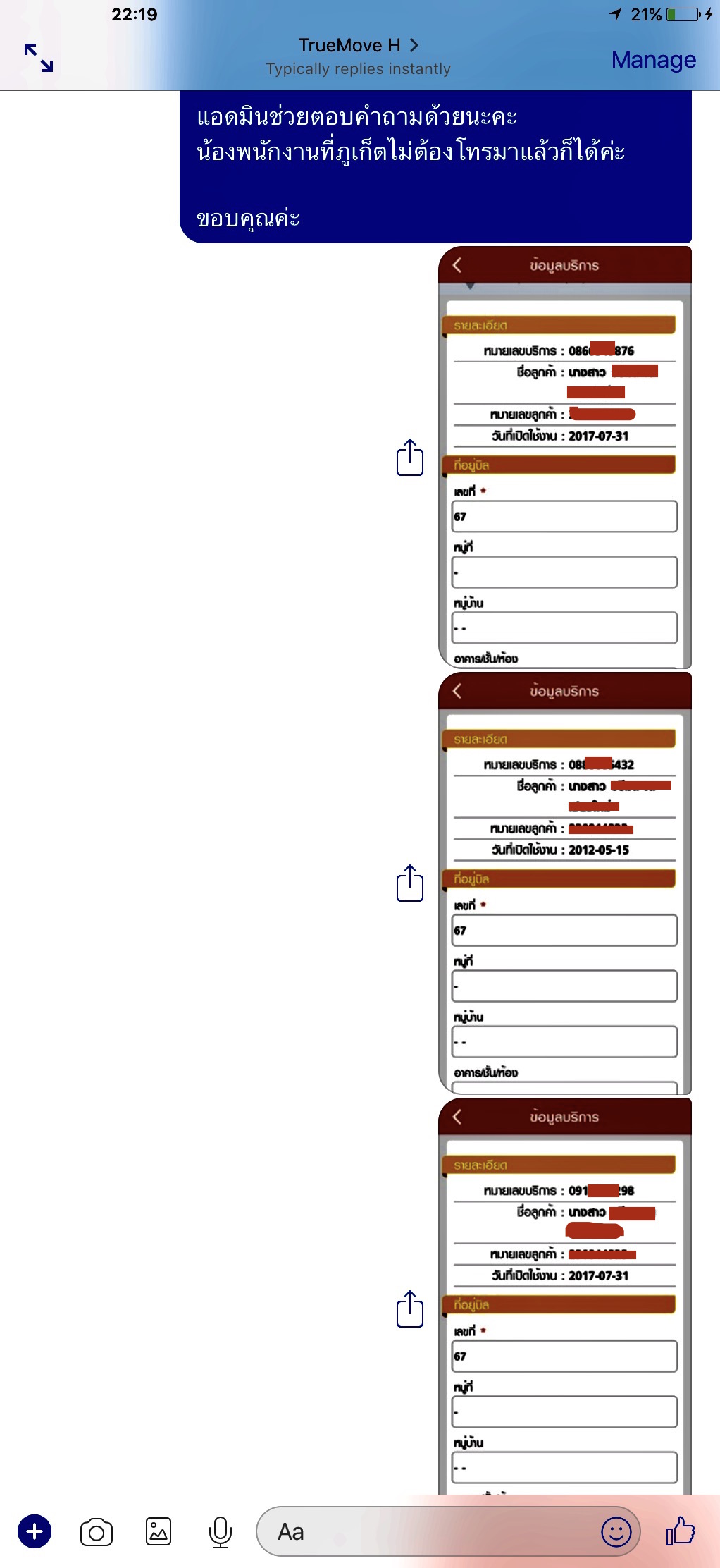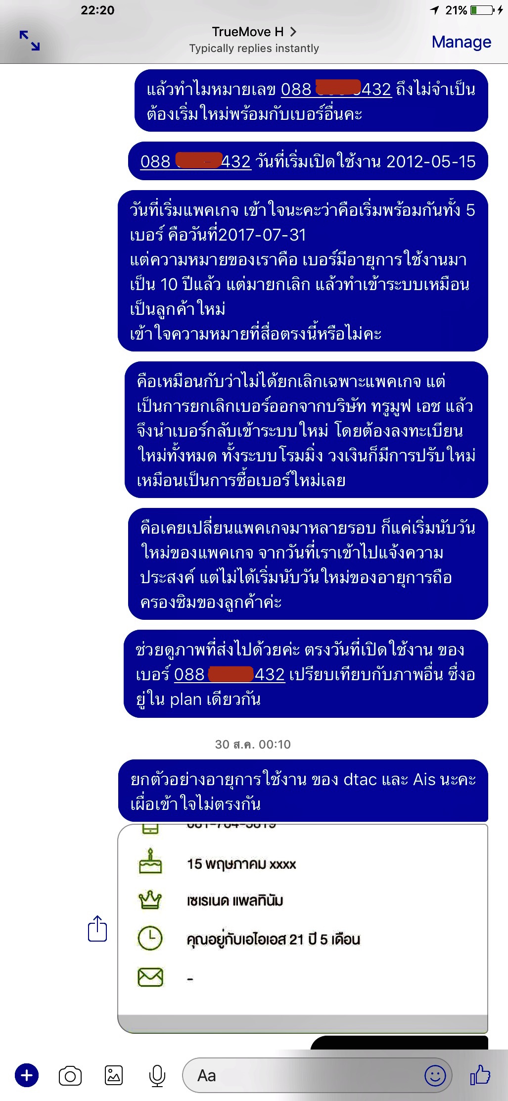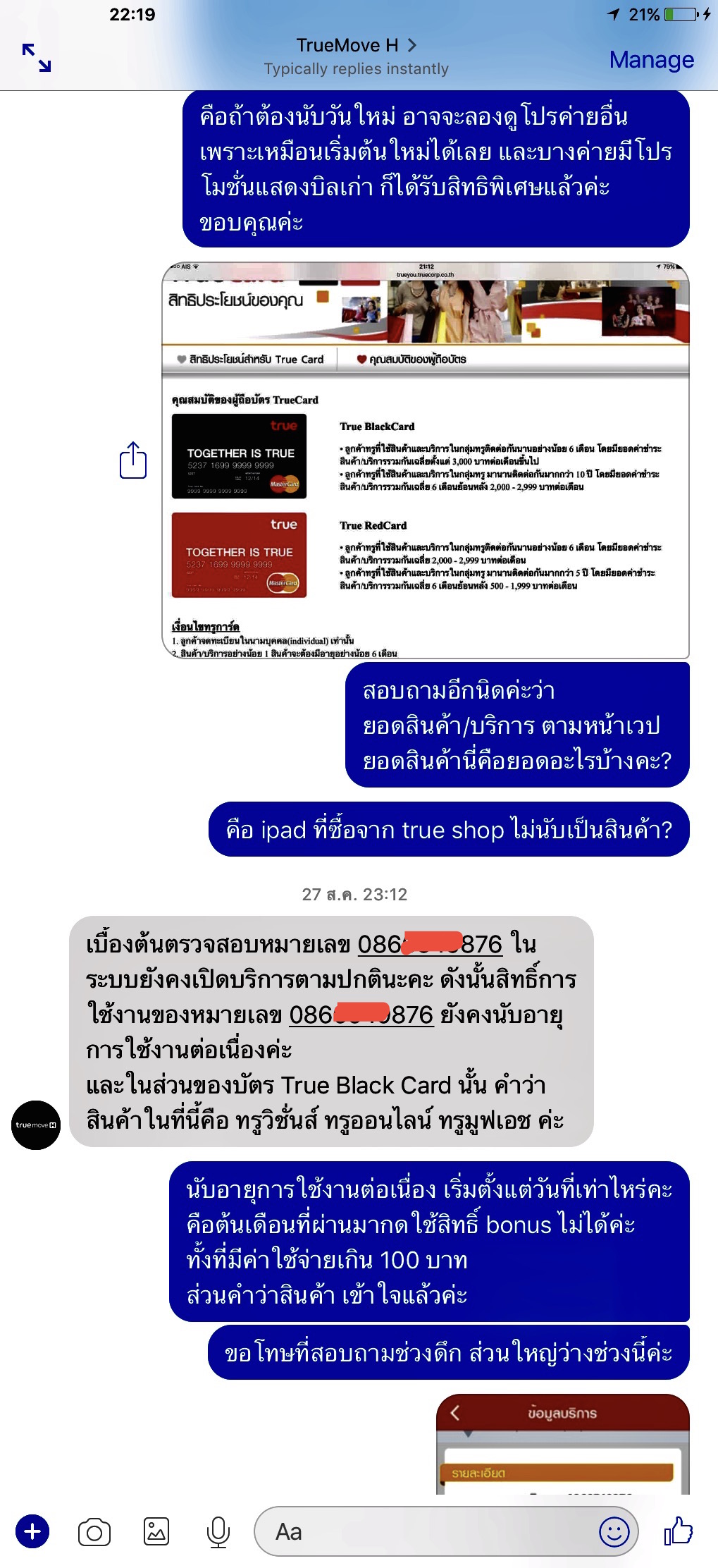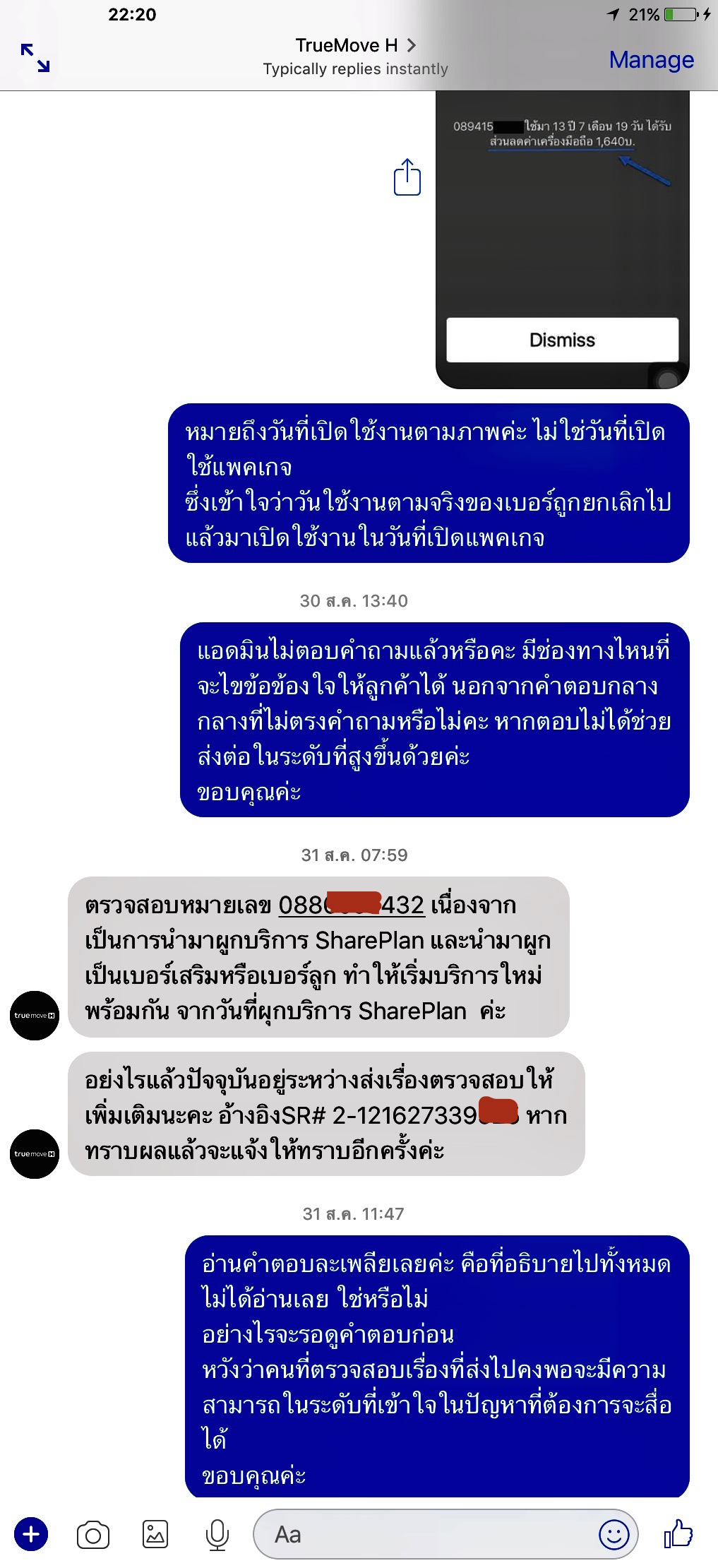 มีข้อความที่ได้ติดต่อกับเจ้าหน้าที่ Truemove ค่ะ