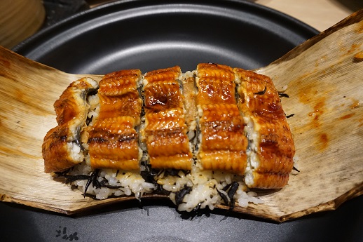 จานที่ 5 Sake Hasu Mushi ข้าวหน้าปลาแซลมอนนึ่งใบไผ่ อีกหนึ่งทางเลือกสำหรับคนที่ไม่ชอบทานปลาไหลค่ะ เมนูนี้เก๋ตรงที่มีการรวมเนื้อปลาแซลมอนจาก 3 น่านน้ำไว้ด้วยกัน ปรุงรสด้วยซอสสูตรพิเศษ เสิร์ฟพร้อมไข่ปลาแซลมอนที่หมักสูตรลับเฉพาะ จนได้กลิ่นที่หอมหวน และยังมีไข่หวานของโปรดของเด็กๆอีกด้วย ถือว่าเป็นเมนูของคนทุกช่วงวัยจริงๆค่ะ