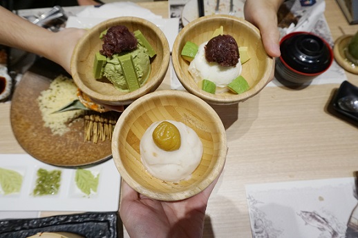 ไอศกรีมสามรสชาติสุดท้าย ขอถ่ายทีเดียว เพราะว่าตอนนั้นเริ่มอิ่มแล้วค่ะ (ความขี้เกียจมาาา) นี่คือ Matcha Green Tea Ice Cream มัทฉะชาเขียว (ซ้าย), Hokkaido Milk Ice Cream นมสดฮอกไกโด (ขวา) และ Umeshu Ice Cream เหล้าบ๊วย (ล่าง) ที่บอกตามตรงว่าอร่อยทุกรสชาติจริงๆ โดยเฉพาะนมสดฮอกไดโก อร่อยมากกกกกก หอมมากกกกกก ละมุนมากกกกกก ขนาดเพื่อนในโต๊ะที่ไม่ชอบดื่มนมยังคอนเฟิม เพิ่มลูกเล่นตรงที่ทุกถ้วยจะมีท็อปปิ้งใส่มาให้ทั้งหมดเลยค่ะ ขนาดรายละเอียดเล็กๆน้อยๆ เค้ายังใช้ของคุณภาพดี มีประโยชน์ ทานง่าย และอร่อยเข้ากันอีกด้วย