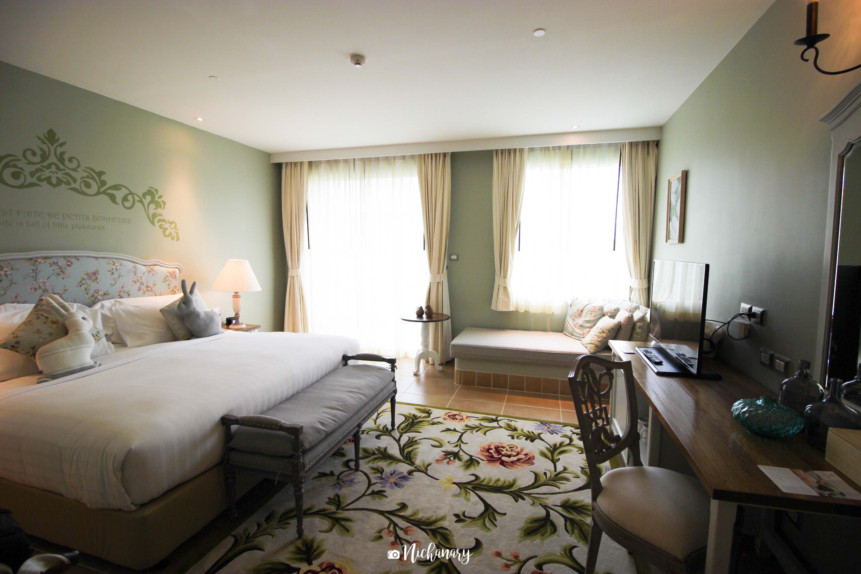 ที่พักน่ารักๆสไตล์ฝรั่งเศส แอดมินมีโอกาสเข้าไปพักเมื่อเดือนกรกฎาคมที่ผ่านมาค่ะ แม้จะเป็นช่วงฤดูฝน แต่อากาศก็ไม่ร้อน ชุ่มฉ่ำไปด้วยสวนสีเขียว และ บรรยากาศในโรงแรมที่ไม่ว่าจะเดินไปมุมไหนๆก็น่ารักทั้งนั้น เหมาะกับคู่รักมาพักผ่อน หรือจะเป็นครอบครัวก็เหมาะมาก เพราะทางรีสอร์ตมีห้องนั่งเล่นสำหรับเด็กๆด้วยค่ะ