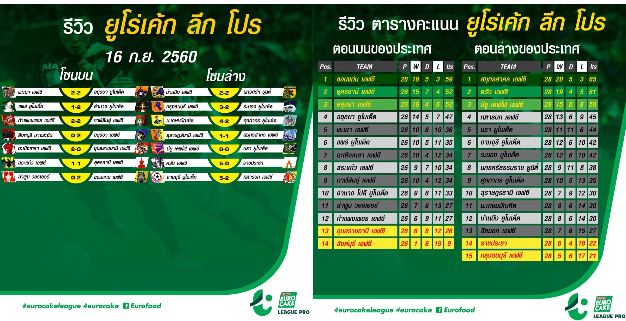 ขอบคุณข้อมูลจาก ยูโร่เค้ก ลีก ผู้สนับสนุนฟุตบอล ยูโร่เค้ก ลีก โปร และ ยูโร่เค้ก ลีก อย่างเป็นทางการ