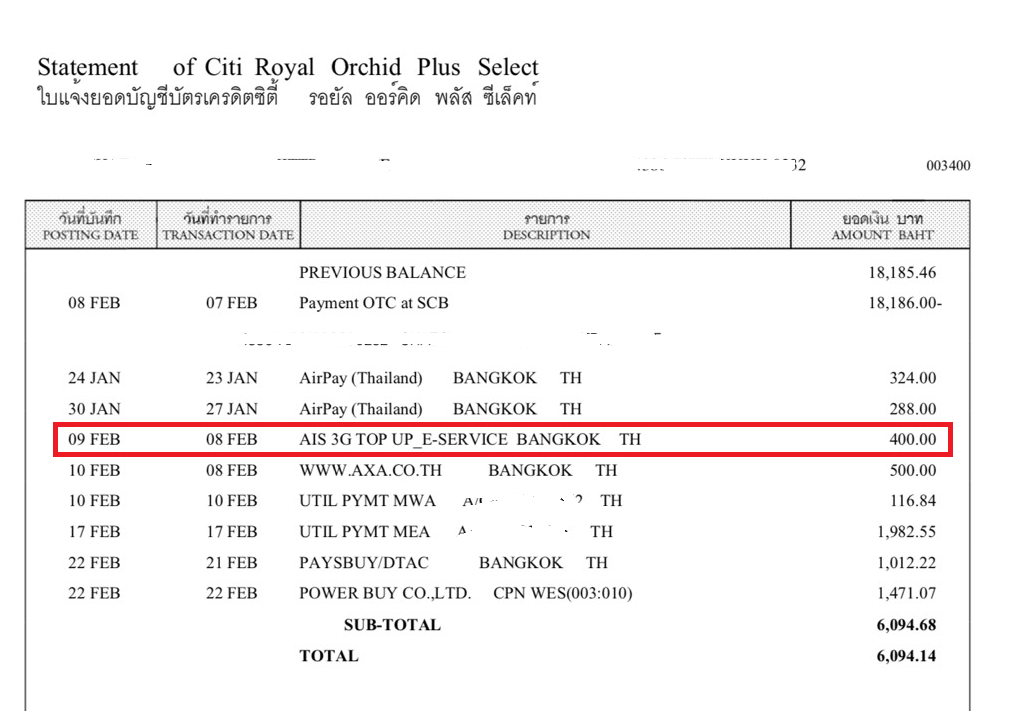 ซึ่งทาง Citibank ก็บอกว่าเราไม่มีข้อมูลตรงนั้น มีแต่รหัส authorize code ในการทำรายการเพื่อตรวจสอบกับทาง AIS