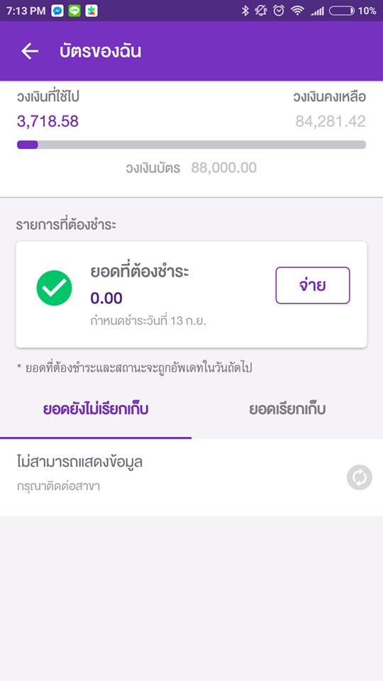 ใน App SCB Easy ผมจะดูรายการบัตรเครดิตที่ใช้ไป ปรากฏว่า มันขึ้นแต่ให้ "ไม่สามารถแสดงข้อมูล และให้ติดต่อสาขา" ตลอดไม่ว่าจะต่อ 4G หรือ wifi ทั้งที่มีรายการ การใช้งาน รวมถึงตรวจสอบใน Web SCB ปรากฏว่าดูได้ปกติ