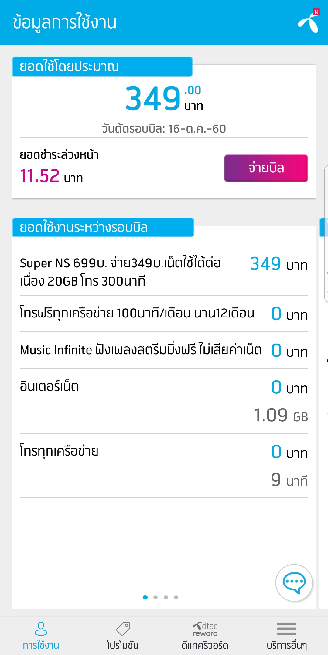 ตอนนี้ใช้ dtac โปร 350 บาท เล่นได้ 1 GB fup 384 kbps กำลังจะหมดวันที่ 13 ตุลานี้ ลองไปดูโปรโมชั่นที่มีอยู่ของ dtac ก็เป็น 399 1gb แต่ fup แค่ 128 kbps แต่ละเดือนเฉลี่ยใช้ 3G ประมาณ 1.3 - 1.6GB พอจ