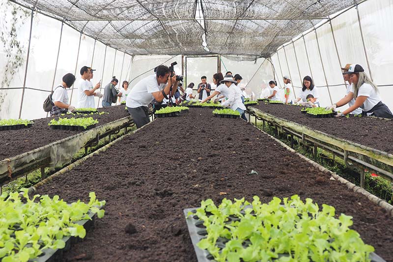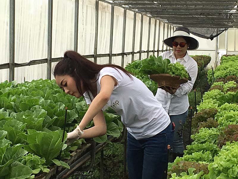เสร็จแล้วไปเยี่ยมชมแปลงผัก ร่วมกิจกรรม ปลูกผัก เก็บผัก เก็บมะเขือเทศ