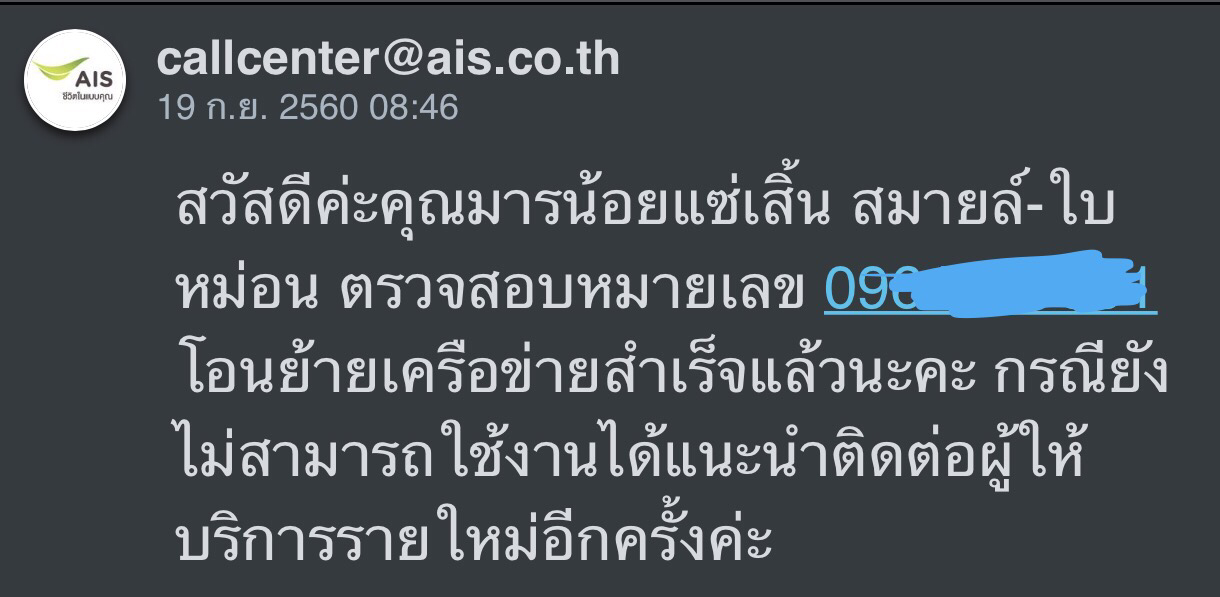 ติดต่อไป True ก็แจ้งไปติดต่อ AIS
