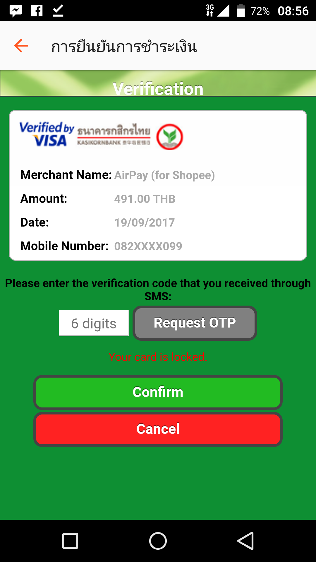 บัตรธนาคาร Kbank ขึ้นโดนล๊อก ทำยังไงคะ มีรูป