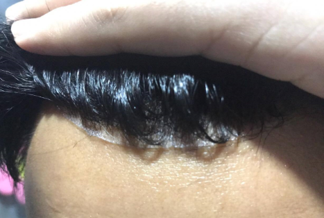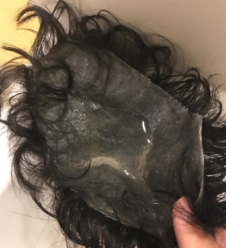 รวมไปถึงขอบบริเวณศีรษะด้านใน และมีอาการคันหนักยิ่งขึ้น ทำให้มีการติดต่อเข้าไปอีกครั้ง ก็ไร้การตอบคำถาม โดยผมได้ถามทางเจ้าหน้าที่ที่ดูแลการเปลี่ยนผม กลับให้คำตอบว่า คันเป็นเรื่องปกติ และส่วนที่ปริบริเวณด้านหน้าก็เป็นเรื่องปกติ ทั้งๆที่โฆษณาได้แจ้งว่าไม่เห็นขอบ อีกทั้งเมื่อลองสอบถามทางเจ้าหน้าที่ หลังจากติดแล้วว่า ตัวเลนส์มีรูระบายอากาศจริงไหม ทางเจ้าหนี้ที่ได้แจ้งว่า ไม่มีเพราะถ้ามีจะติดกาวได้ไม่ดี และจะหลุดบ่อย ซึ่งตรงนี้ต่างจากการโฆษณาเช่นกัน เนื่องจากโฆษณาแจ้งว่า มีรูระบายอากาศ ไม่ชื้น ซึ่งเมื่อ 2 วันก่อน ผมได้ทำการออกกำลังกาย และมีเหงื่อเยอะ กลับมีน้ำไหลออกมาจากเลนส์ที่ปริ ทำให้ลองเปิดเลนส์ดู กลับเจอน้ำเหงื่อ และขี้ไคลที่ หมักมมอยู่บริเวณใต้แผนเลนส์ ส่งกลิ่นเหม็น และมีผื่นแดง ทำให้ผมตัดสินใจโกนผมทิ้งและเอาเลนส์ตัวนี้ออก และได้ลองนำเลนส์ผมมาทดสอบ ว่ามีรูระบายจริงไหม โดยการเทน้ำลงไปบริเวณใต้เลนส์ เพื่อดูว่ามีน้ำไหลผ่านไหม โดยผลการทดสอบเป็นดังรูป