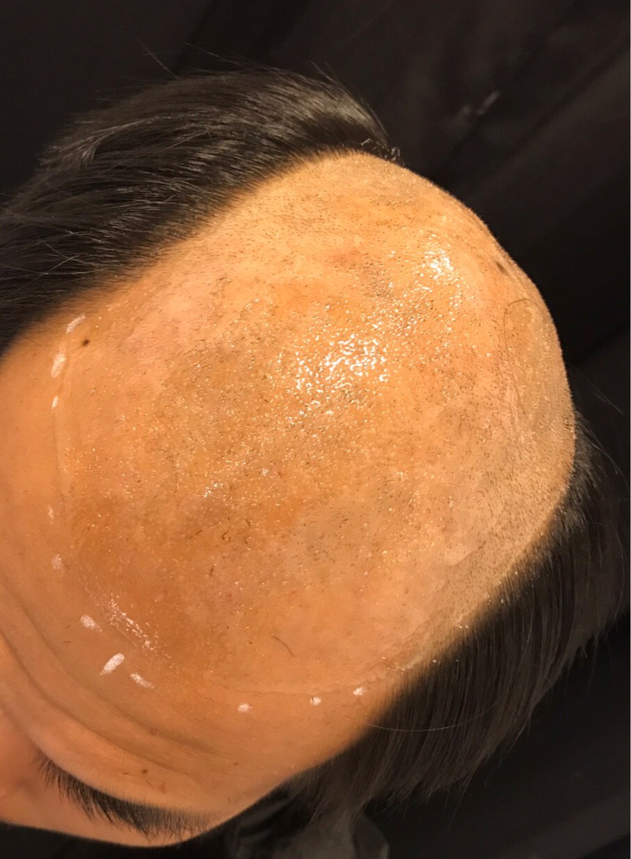 รวมไปถึงมีอาการคันที่ศีรษะ เมื่อติดต่อไปทางบริษัท ซึ่งแจ้งว่า เป็นอาการคันเนื่องจากอาจจะแพ้กาวที่ใช้ติดหนังศีรษะ ผมก็ทนการคันอยู่ถึง 2 อาทิตย์ จึงได้มีการเข้าไป โกนผมและรับการลงกาวใหม่อีกครั้ง ก็เป็นลักษณะเดิมคือ มีบริเวณปริที่หน้าผาก