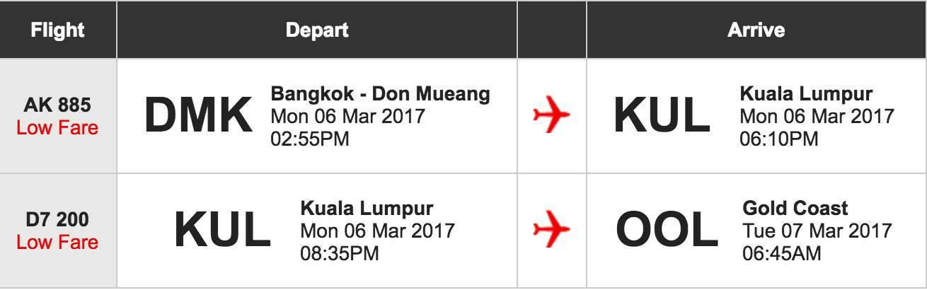 เดินทางครั้งนี้เราไปกับสายการบิน AIR ASIA X เดินทางจาก สนามบินดอนเมือง(Donmueang Airport) >> ท่าอากาศยานนานาชาติกัวลาลัมเปอร์(Kualalumpur International Airport) แล้ว Transit เครื่องเพื่อเดินทางไป >> ท่าอากาศยานโกลด์โคสต์(Gold Coast Airport)