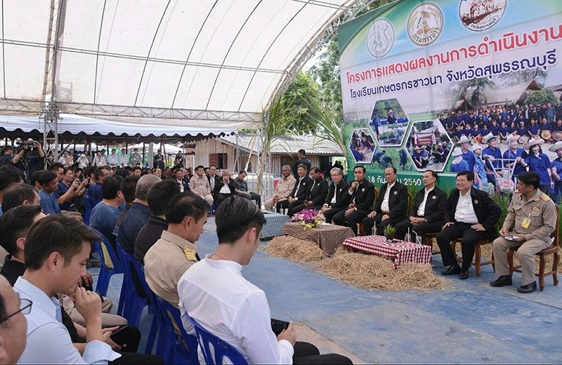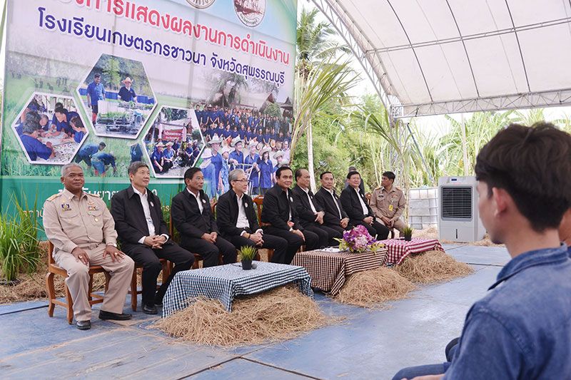 พล.อ.ประยุทธ์ จันทร์โอชา นายกรัฐมนตรี และหัวหน้า คสช. ขอบคุณชาวสุพรรณบุรี และ อยุธยา ที่ให้การต้อนรับอย่างดีในการลงพื้นที่ และรู้สึกดีใจที่พบว่า ประชาชนมีความพึงพอใจต่อแผนงานของรัฐบาล ที่ลงไปสู่ประชาชน และว่า รัฐบาลจะสนับสนุนโรงเรียนชาวนาให้เกิดขึ้นในทุกจังหวัด พร้อมกำชับให้กระทรวงศึกษาธิการ ทบทวนบรรจุหลักสูตรการทำการเกษตรในแบบเรียน เพื่อให้ทุกคนได้เรียนรู้กระบวนการทำงานที่แท้จริงด้วย