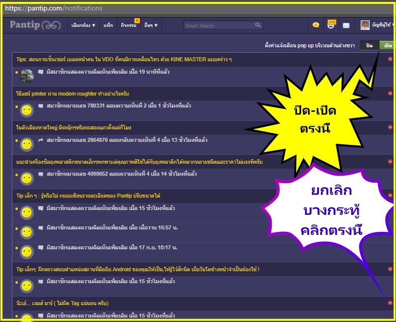 • จำนวนการแจ้งเตือน จะนับจากตัวหนาเข้ม คือ กระทู้ที่มีการเคลื่อนไหว แต่เรายังไม่ได้เข้าไปดู