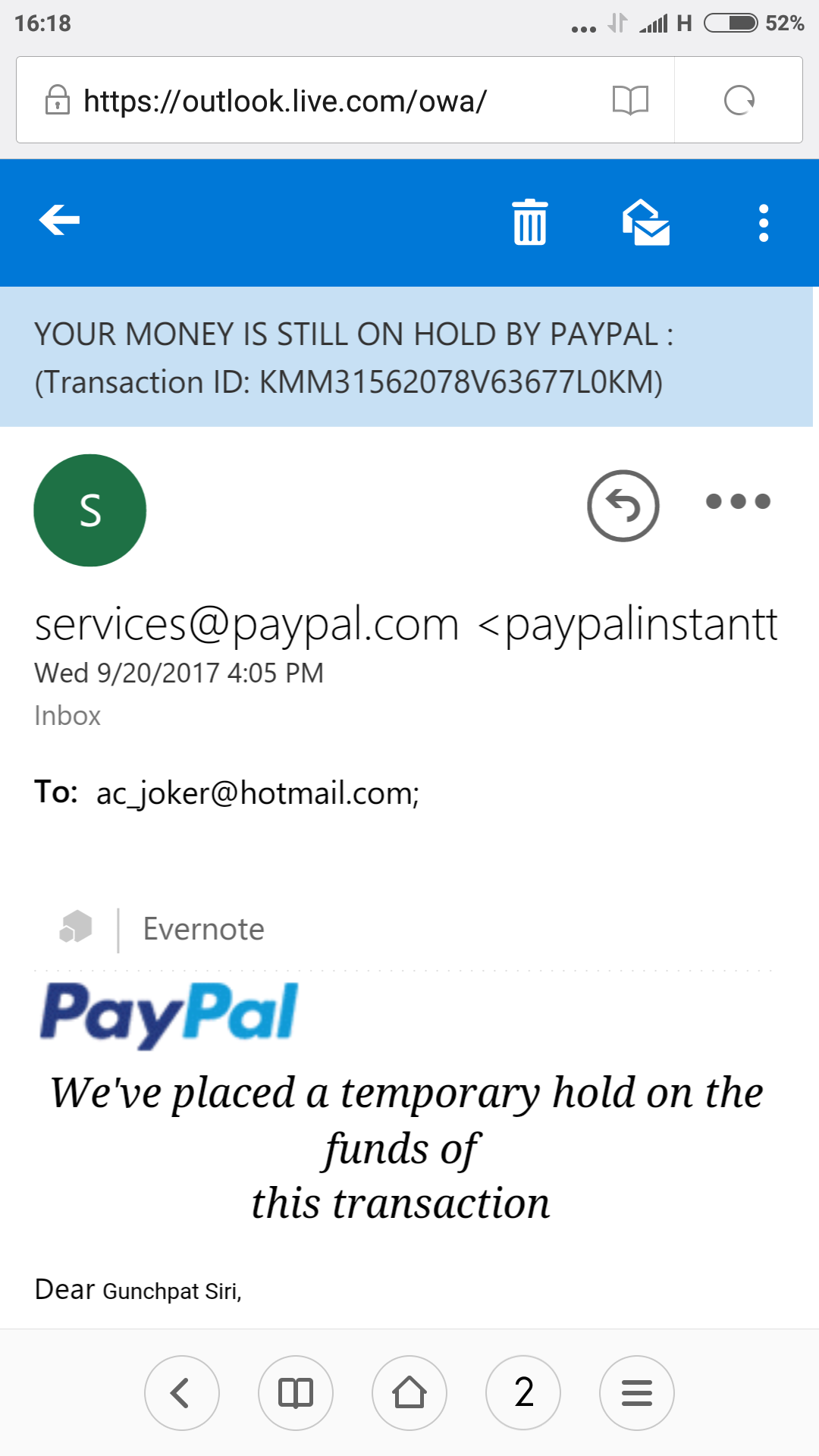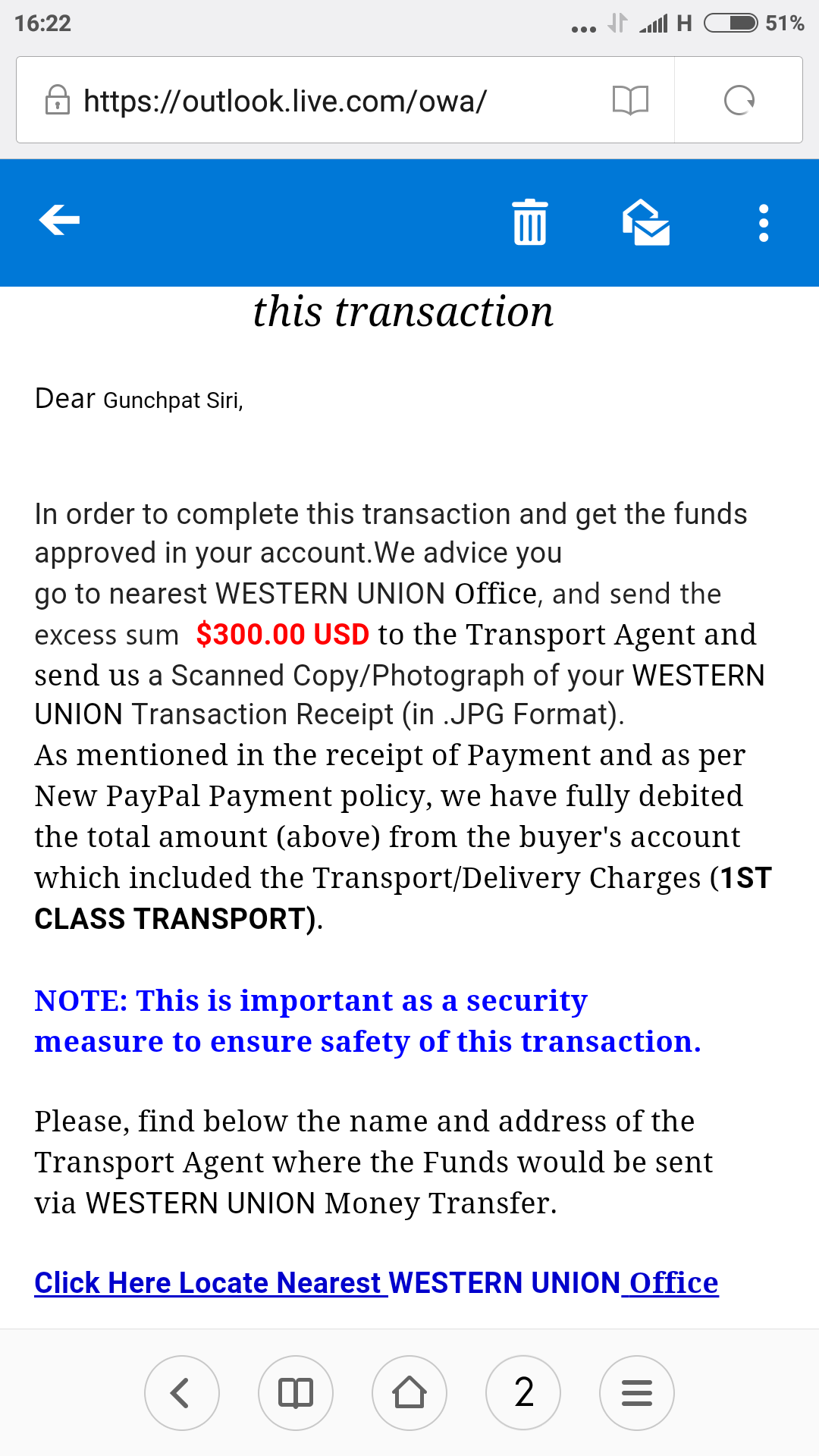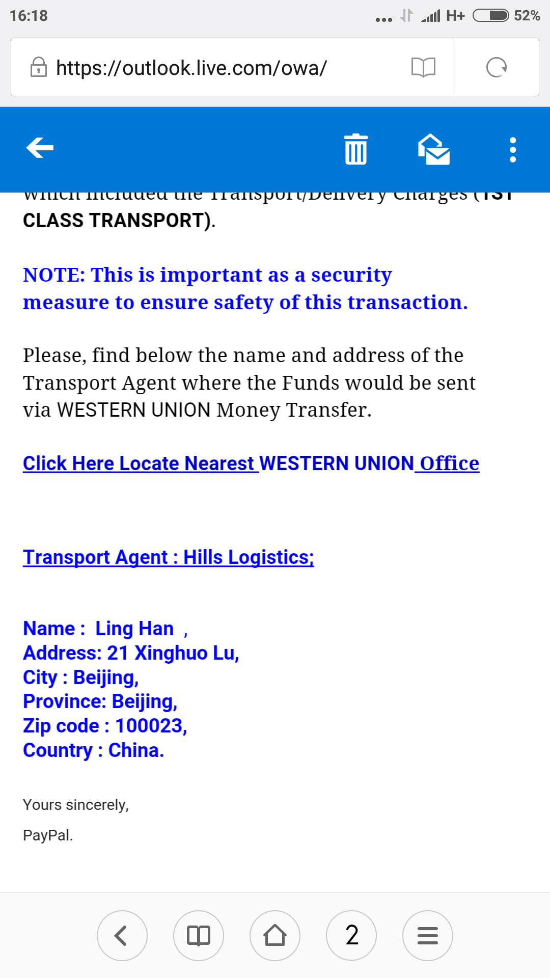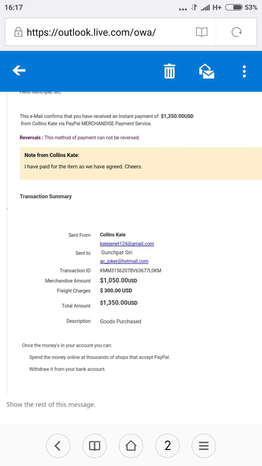 มีชาวต่างชาติซื้อขอวกับผมผ่านทางเพพาว เขาโอนเงินและมีอีเมลมาแบบนี้