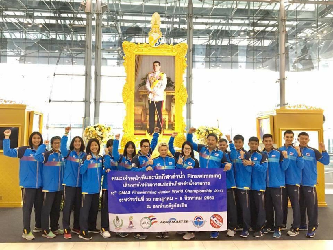 สมาคมกีฬาดำน้ำแห่งประเทศได้รับสิทธิส่งนักกีฬาไปร่วมการแข่งขัน finswimming ในรายการ15th Finswimming World Junior Championships 2017ที่เมืองทอมส์ประเทศรัสเซีย เริ่มเดินทางจากประเทศวันที่30 สิงหาคม 2560 การเดินทางครั้งไปกัน16คนเจ้าหน้าที่4คนนักกีฬาชาย6คนหญิง6คนก่อนออกเดินทางก็ต้องถ่ายรูปเป็นที่ระลึกกันสักหน่อยที่สนามบินการเดินสุวรรณภูมิ