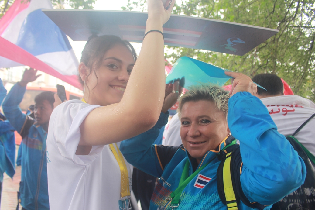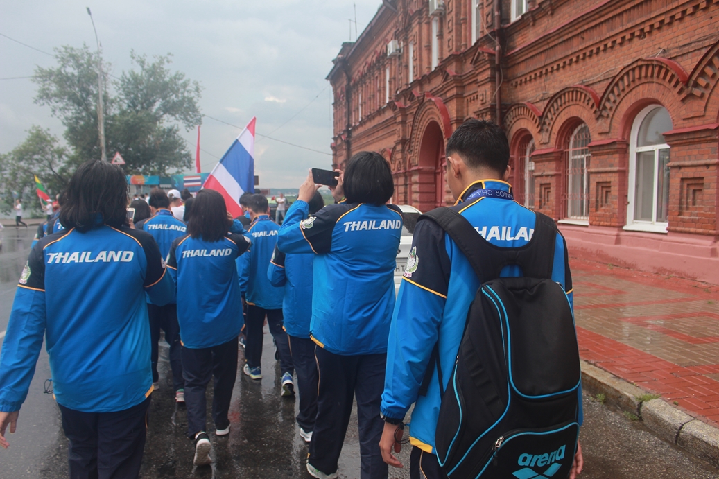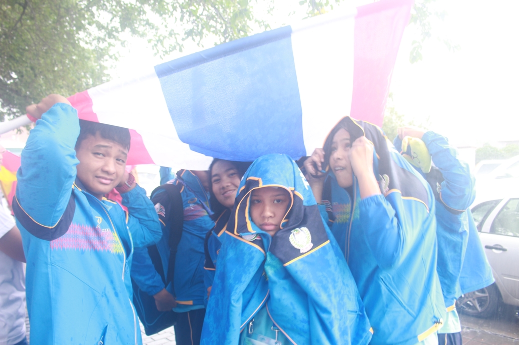 หลังจากฝนตกก็ถ่ายรูปร่วมเดินขบวนพิธีเปิด