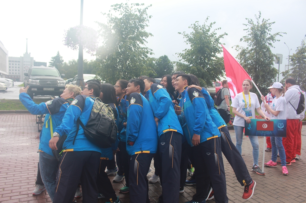 วันที่สองในเมืองTomskช่วงบ่ายมีพิธีเปิดการแข่งขันแต่ก่อนเปิดพอเราลงจากรถฝนดันมาตกพอดีสภาพอย่างทีเห็นนักกีฬากับเจ้าหน้าทีเปียกหลบฝนกัน