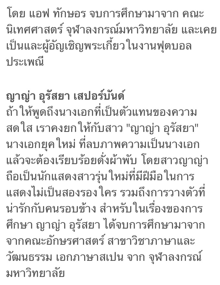 ขอยกเอาคนที่ผลงานโดดเด่น แมท ภีรนีย์ แต้ว ณฐพร มาร์กี้ ราศรี คิม คิมเบอร์ลี่ ญาญ่า อุรัสญา เบลล่า ราณี มิ้นต์ ชาลิดา น้ำตาล พิจักขณา มิว นิษฐา