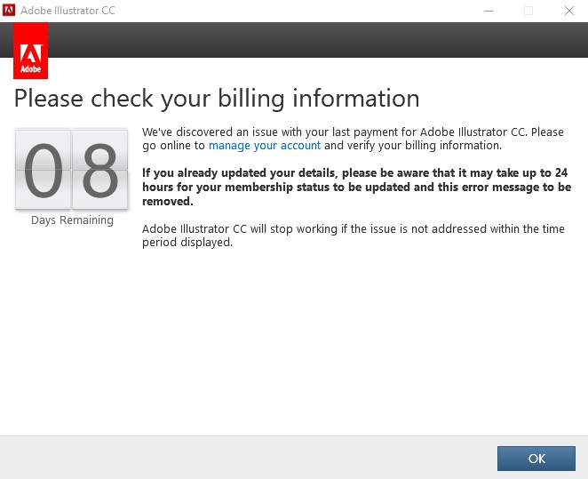Adobe ปัญหาเกี่ยวกับการตัดเงินจากบัตรเดบิต