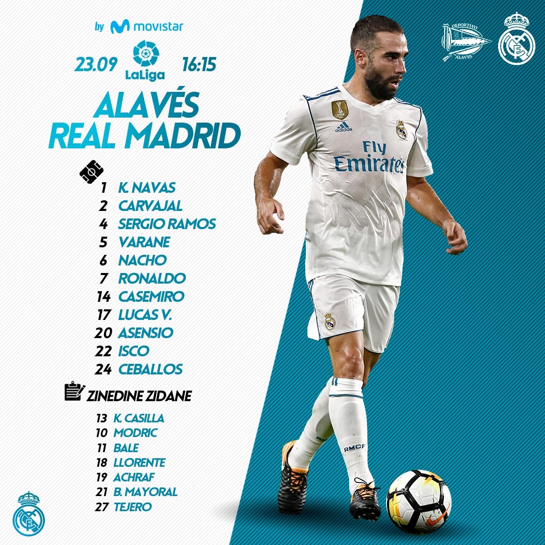 รายชื่อ 11 ผู้เล่นตัวจริง และสำรองของเรอัล มาดริดวันนี้ค่ะ ป.ล. ก่อนเริ่มเกมจะมีการมอบถ้วยแชมป์ลา ลีก้าในฤดูกาลที่แล้วให้กับเรอัล มาดริดด้วย # HalaMadrid สู้!!!