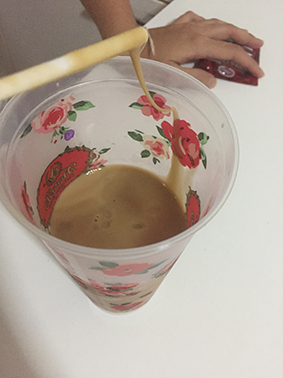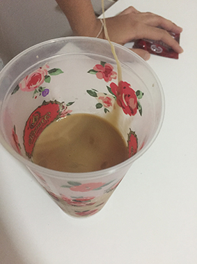 น้องไปซื้อกาแฟลาเต้จากถังกดที่เซเว่นมาค่ะ ขึ้นห้องมาก็บอกว่ามันข้นๆ เหนียวๆ แปลกๆ ละก็เทจากแก้วออกมาให้คนดู คนๆ ก็รู้สึกมันเหนียวๆ ข้นๆ แปลกๆ จริง ลองจิบดูก็แบบ เทกซเจอร์เหมือนไข่ขาวอ่ะค่ะ ข้นๆ หนักๆ รสชาติกับกลิ่นก็ปกติ น้องบอกว่าตอนกดในถังมีอยู่ประมาณ 1/3 เหลือเยอะอยู่อ่ะค่ะ ตอนนี้คิดว่าเป็นเพราะมันตกตะกอนหรือเปล่า