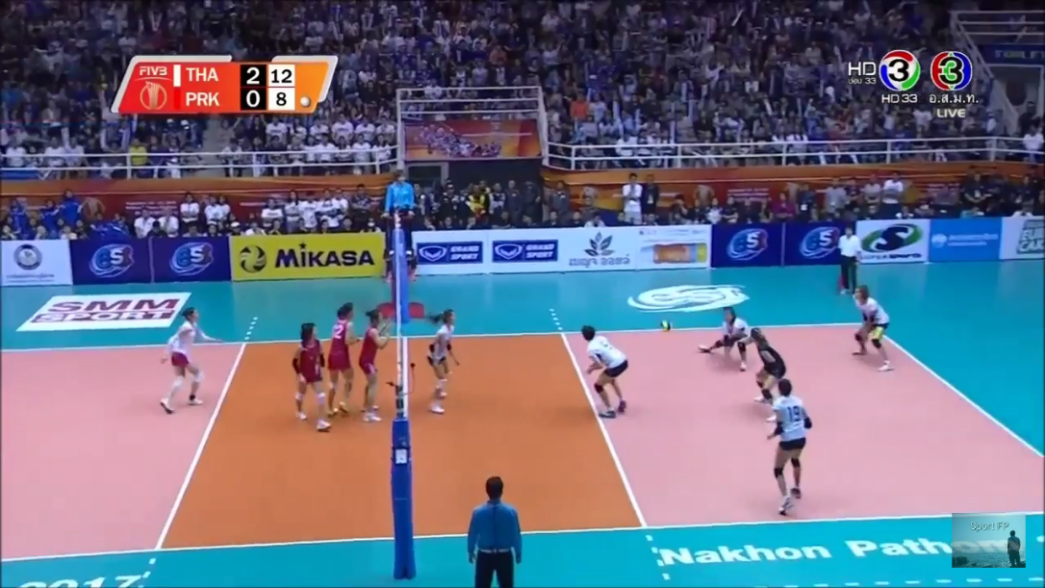 เซตที่3 ไทยนำเกาหลีเหนือ12-7 เกาหลีเหนือเสิร์ฟใส่บิ๋ม บิ๋มเข้ารับมาไม่ทัน เกาหลีไล่มาเป็น8-12 แต้มต่อมา เกาหลีเหนือเสิร์ฟไปหาบีมโดยตรง ไม่ได้เสิร์ฟมาหาบิ๋มแล้วบีมพุ่งเข้ามารับแทนอย่างที่226พูดแต่อย่างใด ดูจากในรูป บิ๋มอยู่เสาซ้ายในตำแหน่งที่4 บีมอยู่แดนหลังในตำแหน่งที่1 เกาหลีเหนือเสิร์ฟไปตำแหน่งที่1 บีมรับเองก็ถูกแล้วหนิ
