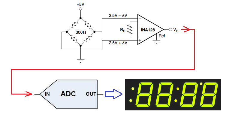 สุดท้าย .... แรงดันที่ขยายแล้วจาก Op amp จะถูกส่งเข้า ADC (Analog to Digital Converter)