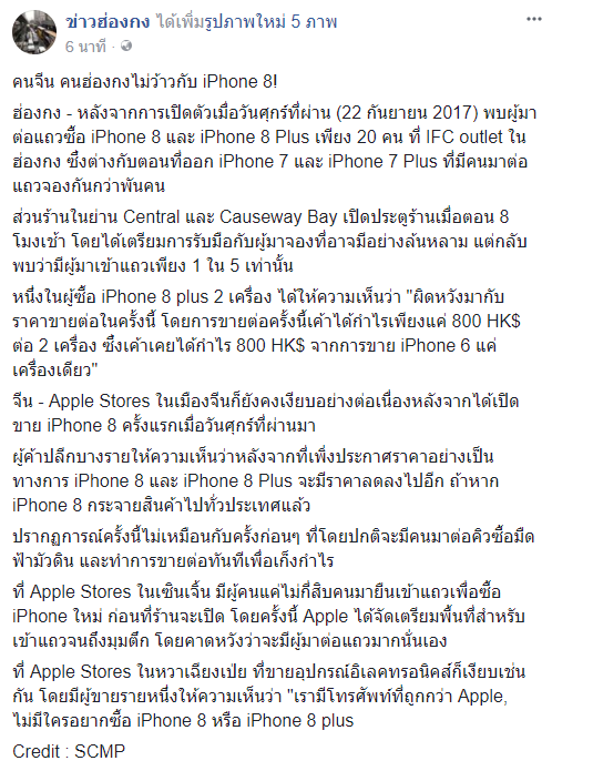 คนจีน คนฮ่องกงไม่ว้าวกับ iPhone 8!