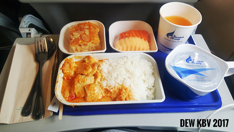 เครื่องขึ้นสักพัก แอร์ก็พร้อมเสริฟอาหาร "วันนี้เป็นเมนู พะแนงไก่เสริฟพร้อมข้าวหอมมะลิ"..อร่อยมากข้าวนิ่มดี..แต่ขนม ไม่อร่อย..ไม่ชอบคับ..ระหว่างทานอาหาร แอร์ก็จะเสริฟ ชาร้อน กาแฟร้อน น้ำส้ม น้ำเปล่า..ทานได้เลยคับฟรี..55+