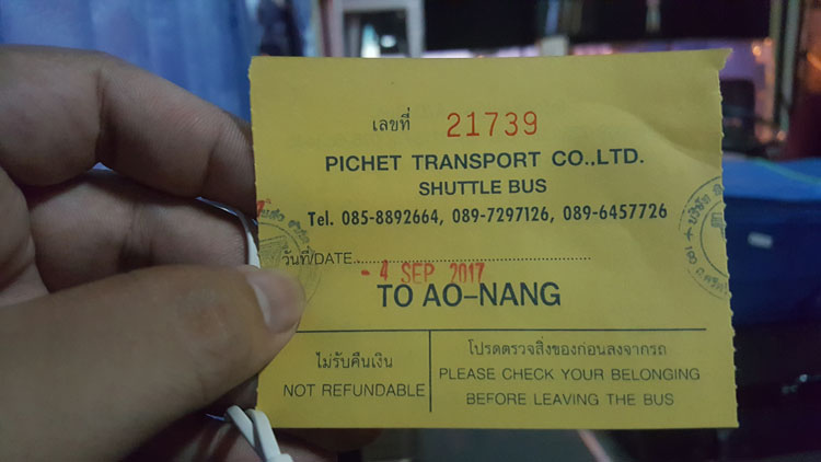 ค่ารถ Shuttle Bus จากสนามบิน มาหาดอ่าวนาง 100 บ.