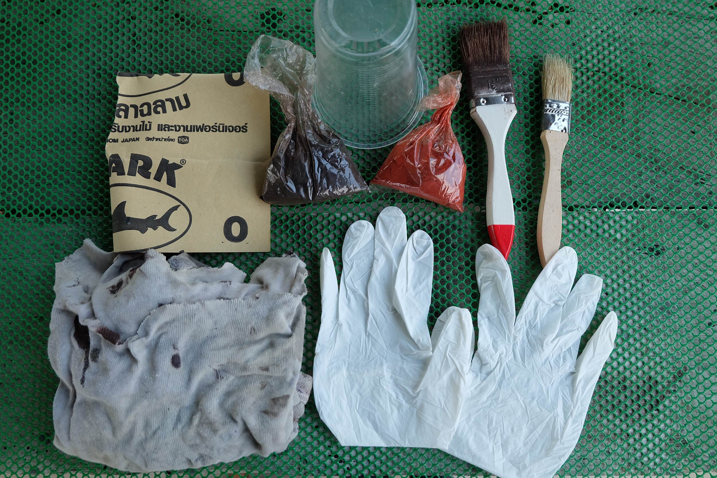 แต่เราคิดว่าน่าจะย้อมได้สิน่า ก็หาข้อมูลซึ่งมีน้อยมาก สุดท้ายไปได้คำแนะนำจากร้านขายสีที่ขายสีมานาน