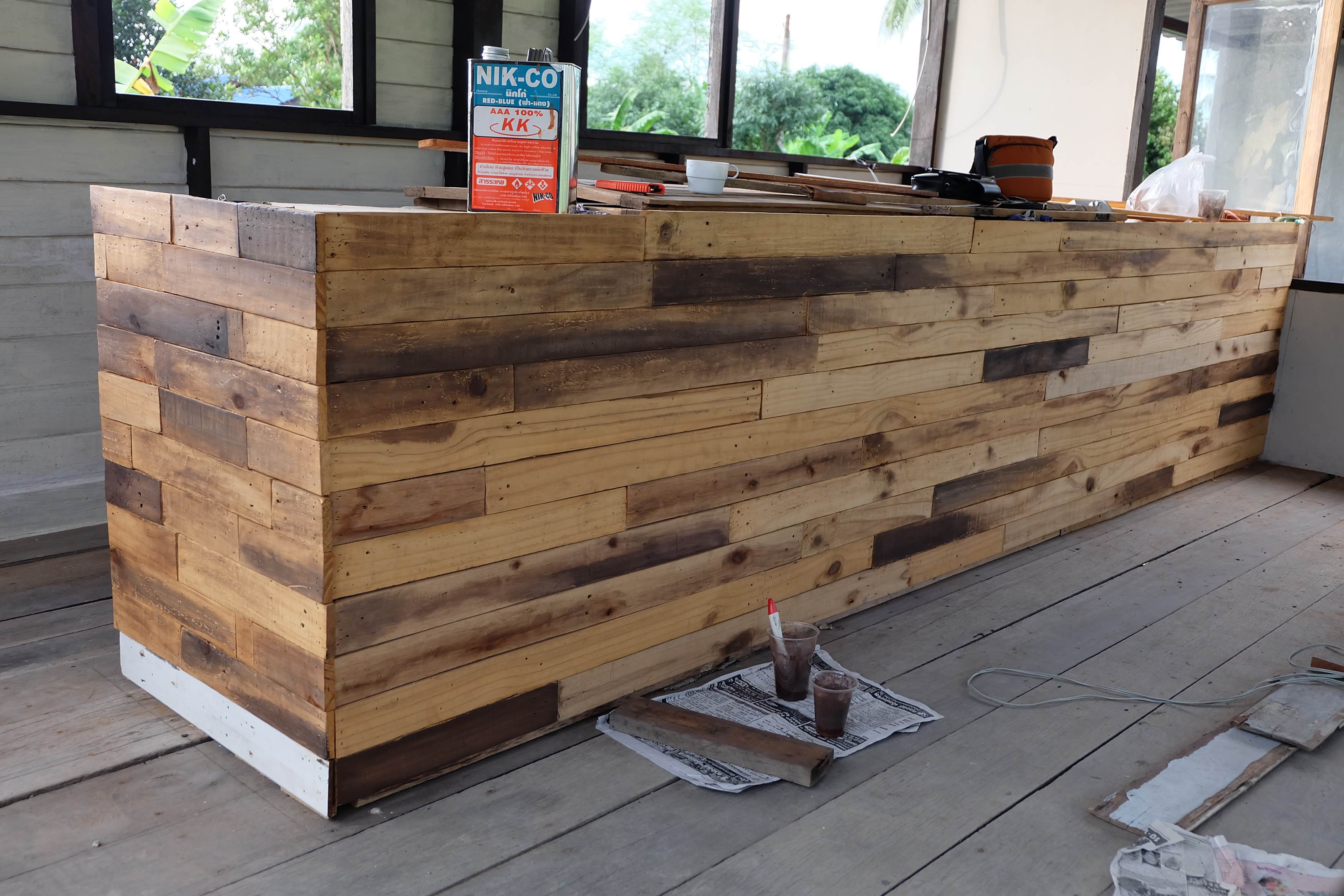 [CR] รีวิว เปลี่ยนสีเคาน์เตอร์ไม้พาเลทแบบมือสมัครเล่น