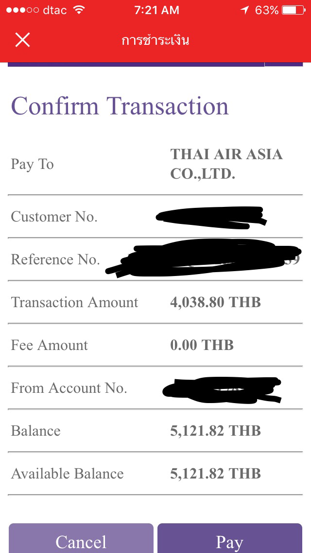 จ่ายเงิน air asia ผ่าน scb easy แล้วแต่สถานะยังเป็น รอการชำระเงิน ทั้งๆที่มีการตัดเงินในบัญชีแล้ว