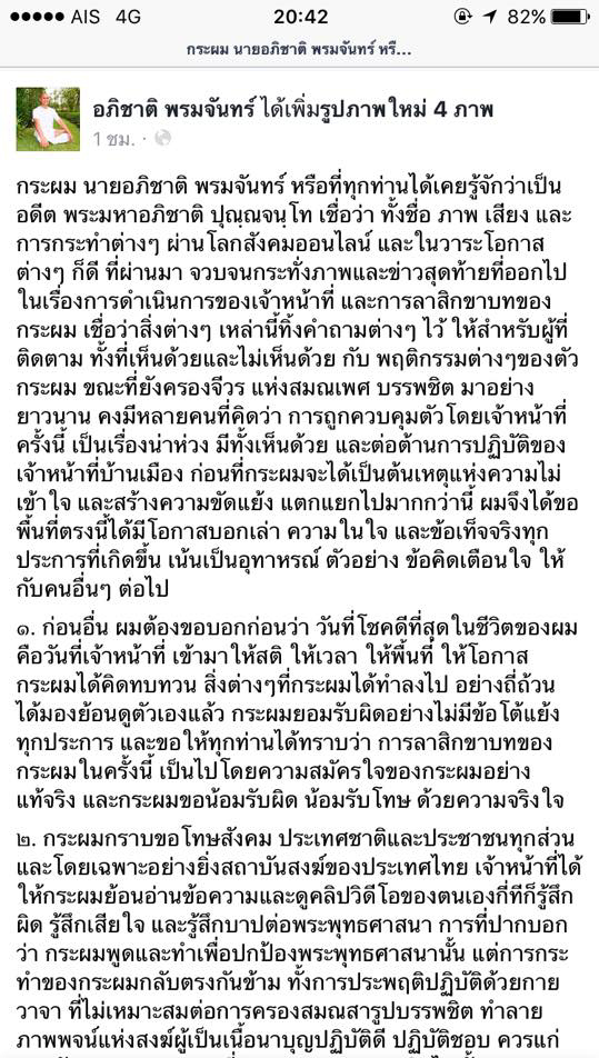 อดีตพระมหาอภิชาตปรากฎตัวแล้ว หลังลือโดนอุ้ม สารภาพบาปในอดีต