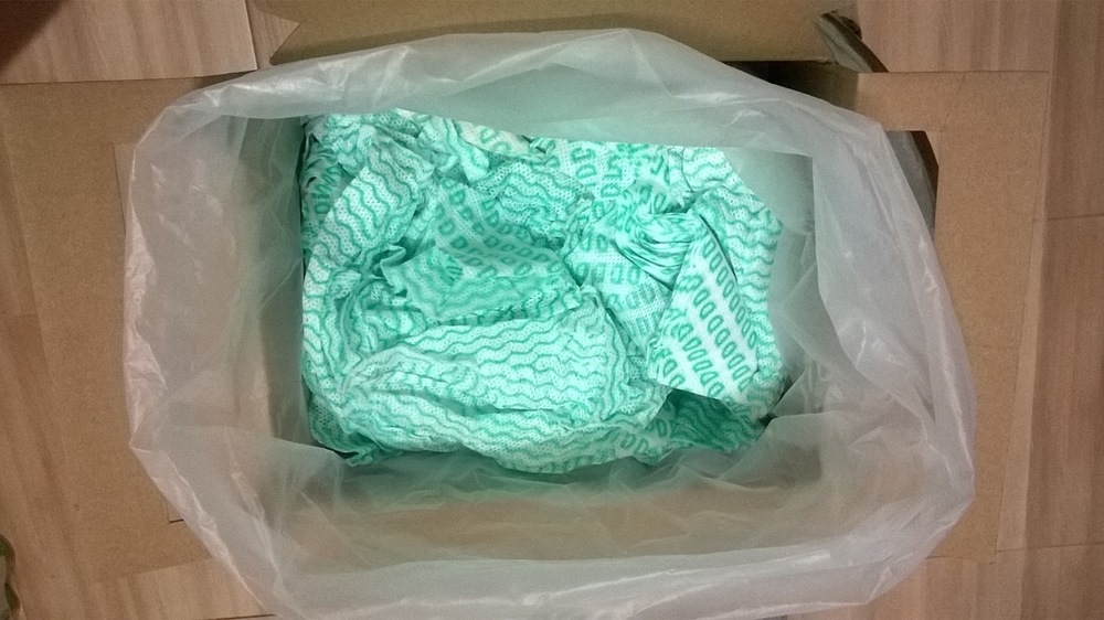 เปิดกล่องออกมาแล้ว ข้างในจะมีถุงพลาสติกใส่พวกเศษผ้าเอาไว้ และเคเบิ้ลไทร์หนึ่งเส้น