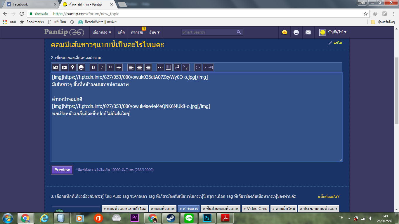 มีเส้นขาวๆ ขึ้นที่หน้าจอเดสทอปตามภาพ